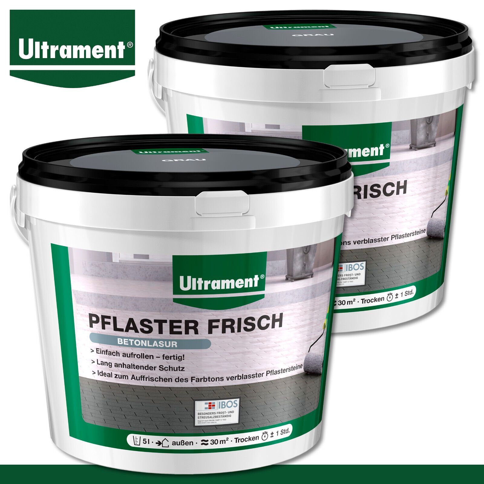 Ultrament 2 x 5 l Pflaster Frisch Betonlasur Betonfarbe Auffrischung Grau