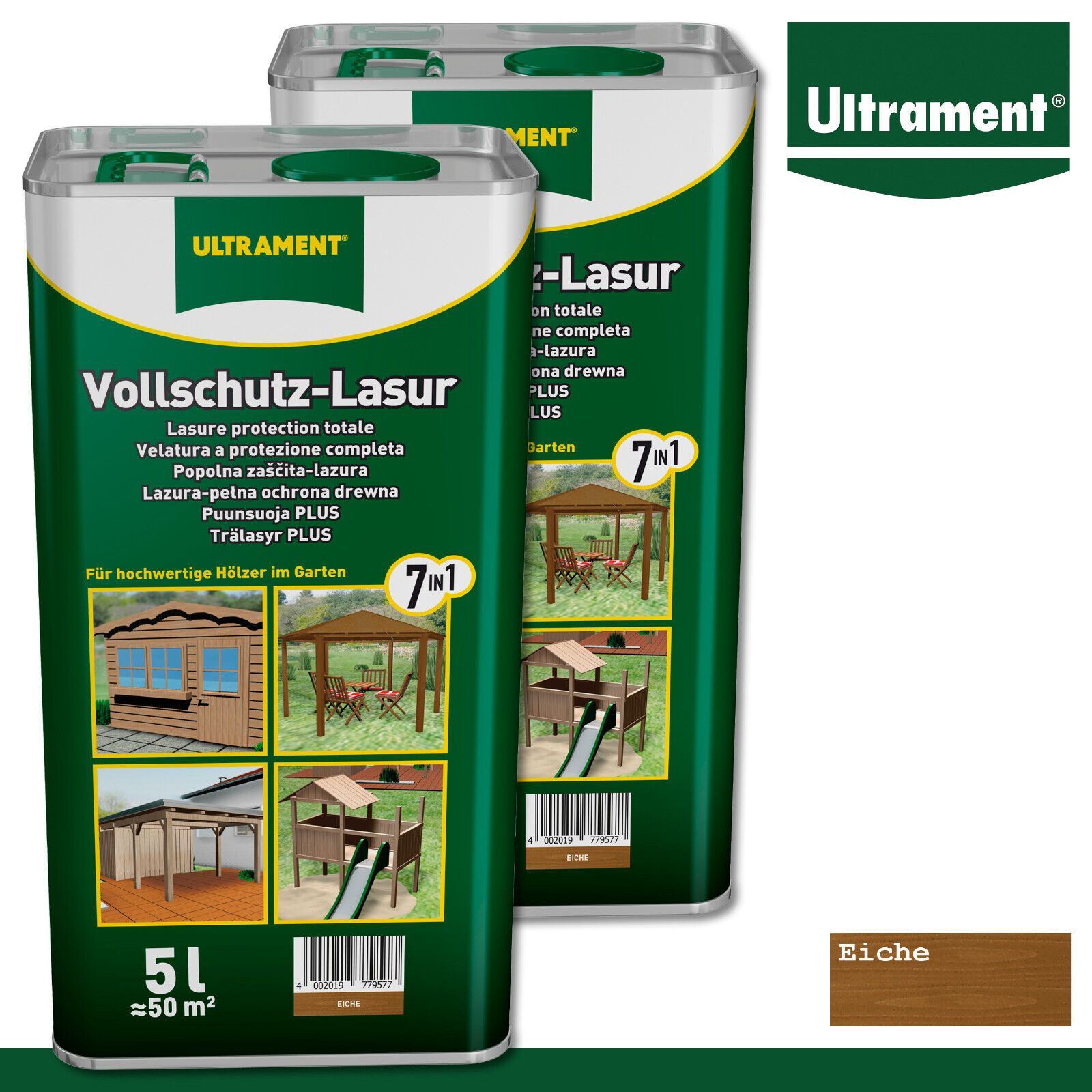 Ultrament 2 x 5 l Vollschutz Lasur 7in1 Holzschutz Holzlasur für Außen Eiche