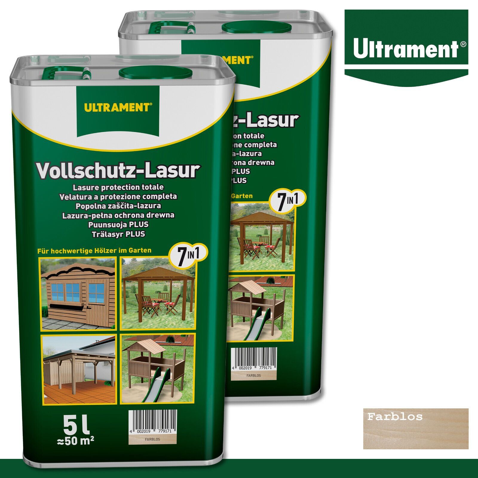 Ultrament 2 x 5 l Vollschutz Lasur 7in1 Holzschutz Holzlasur für Außen Farblos