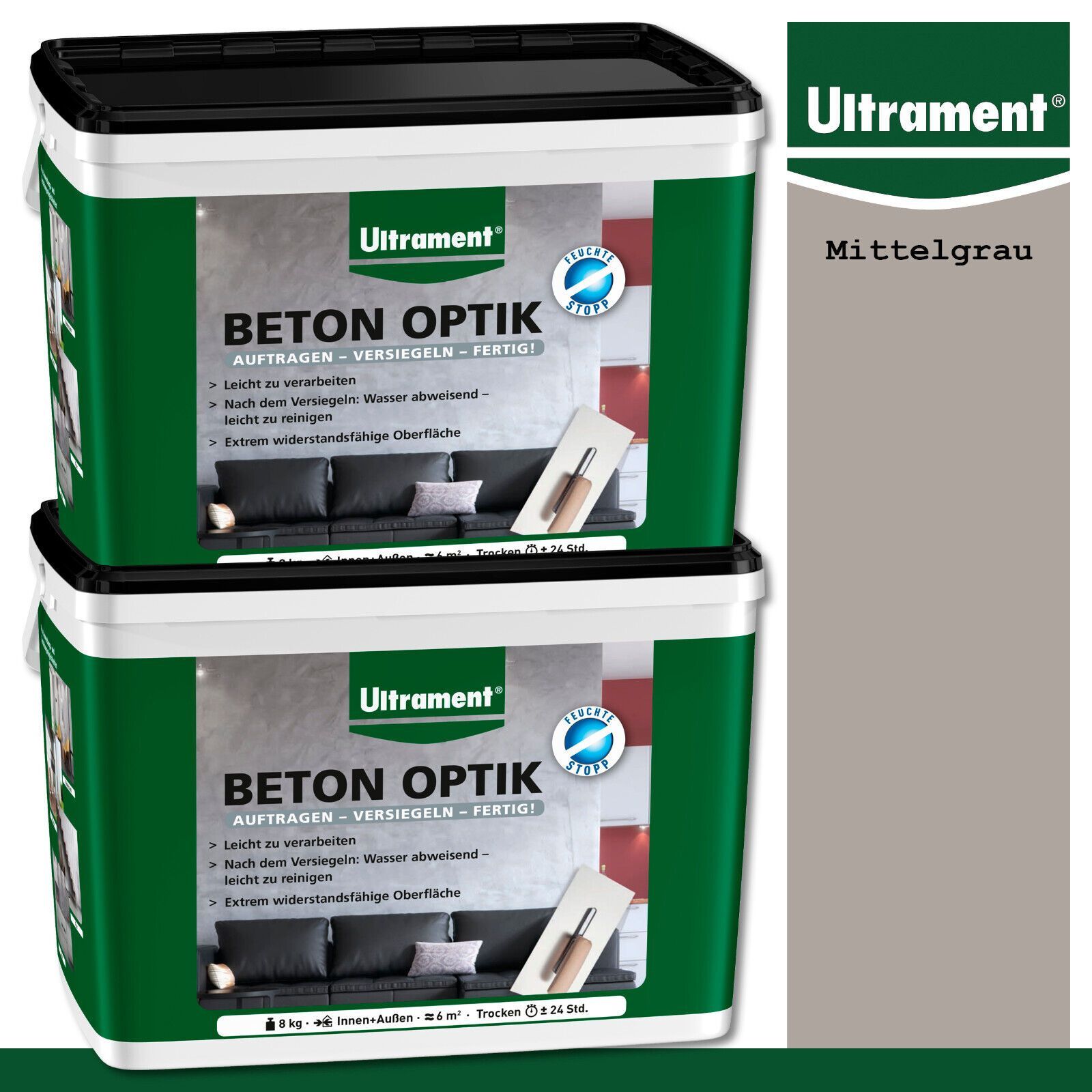Ultrament 2 x 8 kg Beton Optik Pulverspachtel Moderne Wandgestaltung Mittelgrau