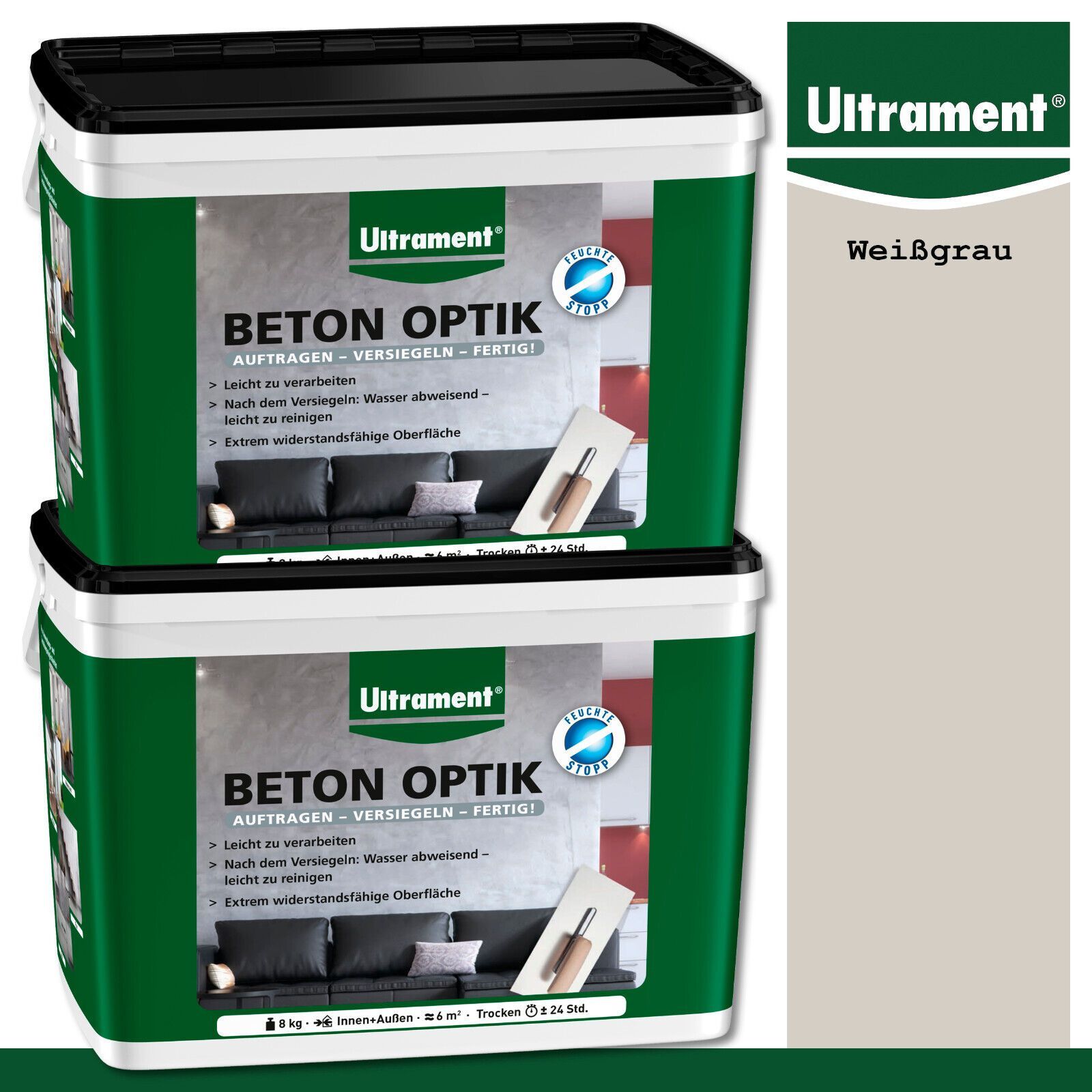 Ultrament 2 x 8 kg Beton Optik Pulverspachtel Moderne Wandgestaltung Weißgrau