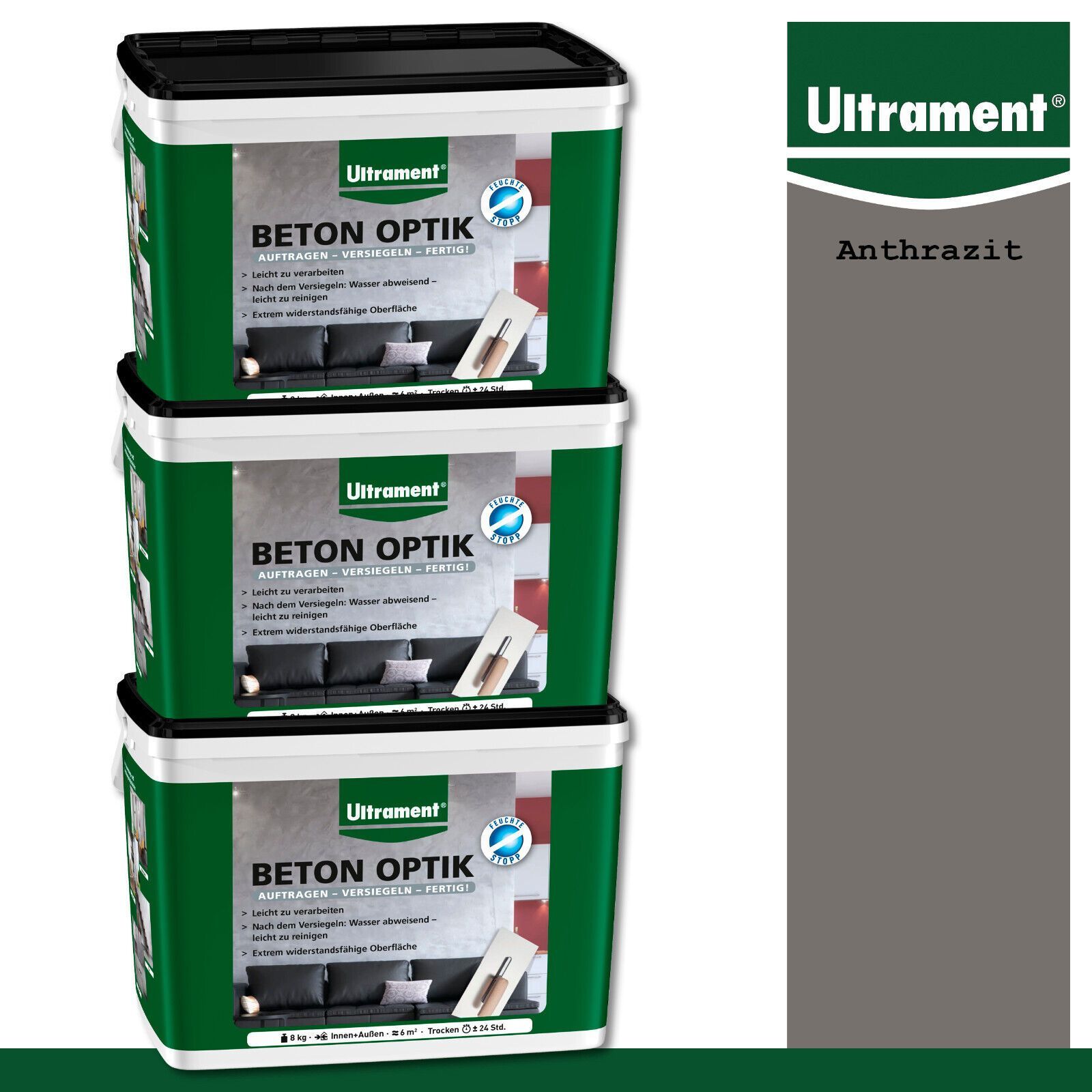 Ultrament 3 x 8 kg Beton Optik Pulverspachtel Moderne Wandgestaltung Anthrazit