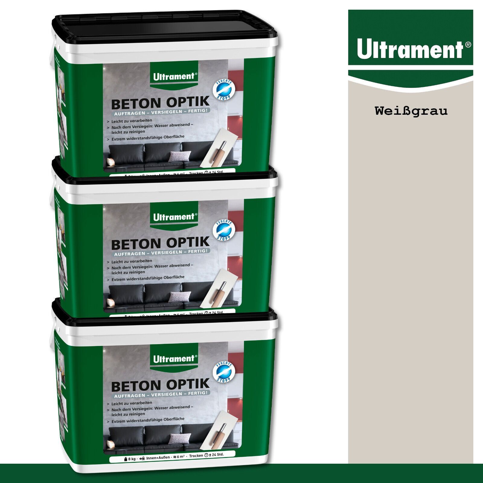 Ultrament 3 x 8 kg Beton Optik Pulverspachtel Moderne Wandgestaltung Weißgrau
