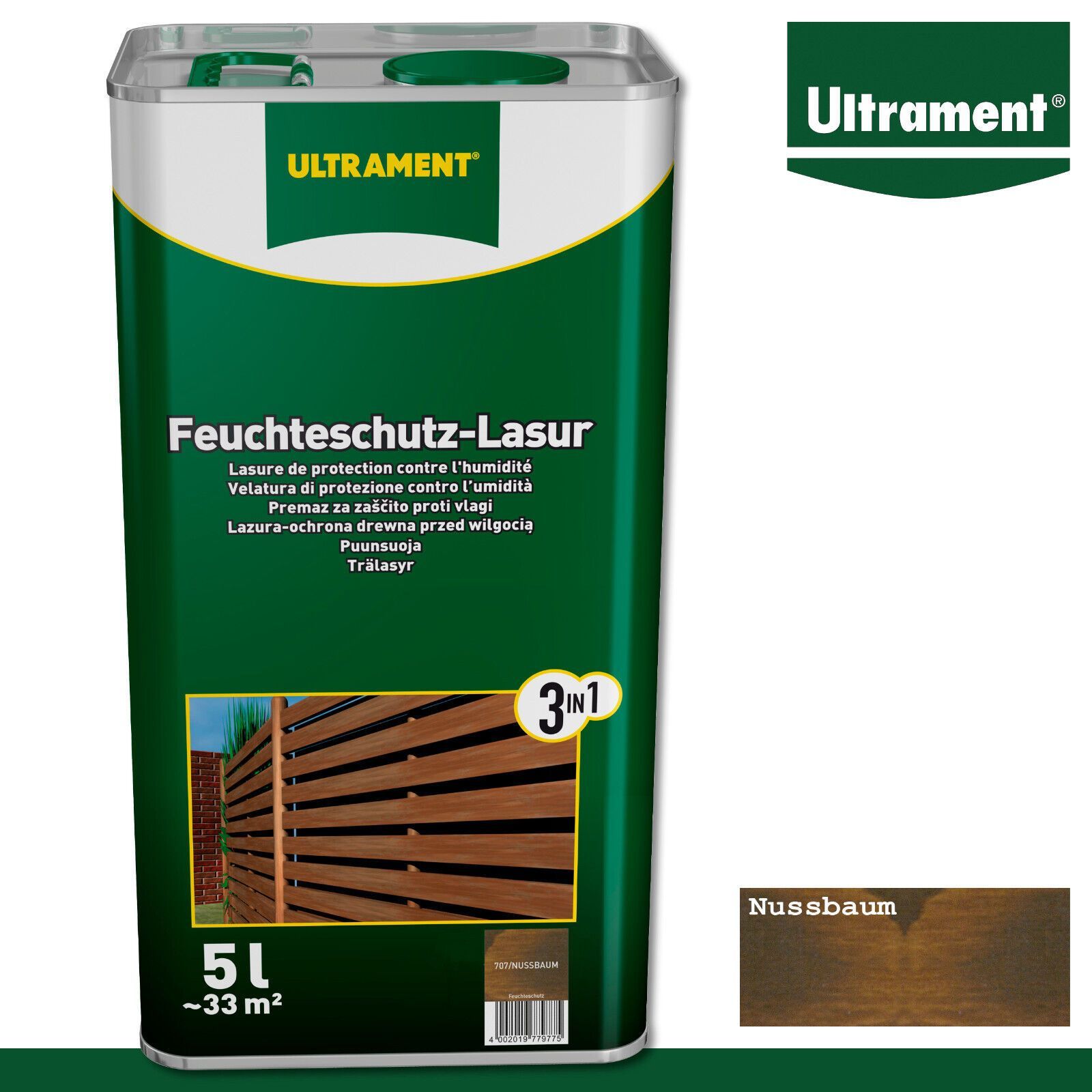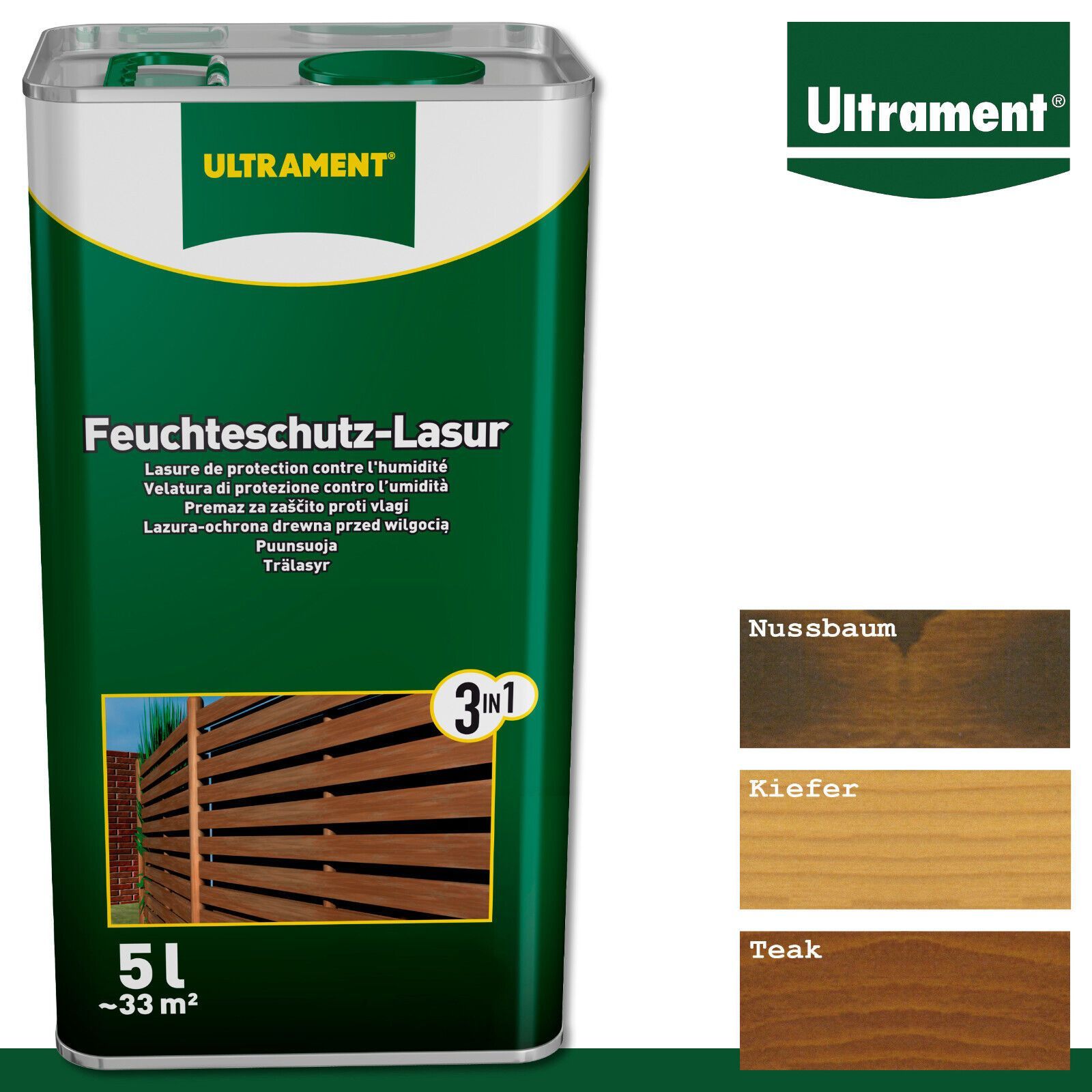 Ultrament 5 l Feuchteschutz Lasur 3in1 Holzlasur Außen in 3 Farben