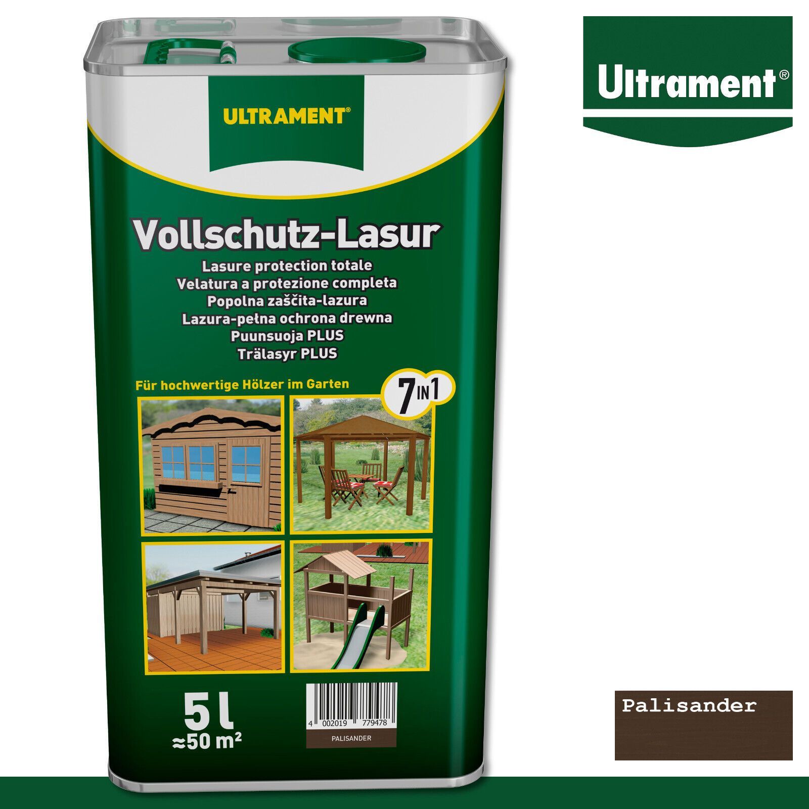 Ultrament 5 l Vollschutz Lasur 7in1 Holzschutz Holzlasur für Außen Palisander