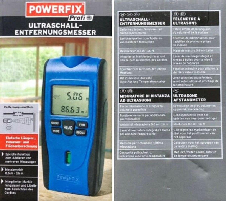 Ultraschall - Entfernungsmesser, Längen/ Volumen/ Flächen. NEU & in Original-Packung