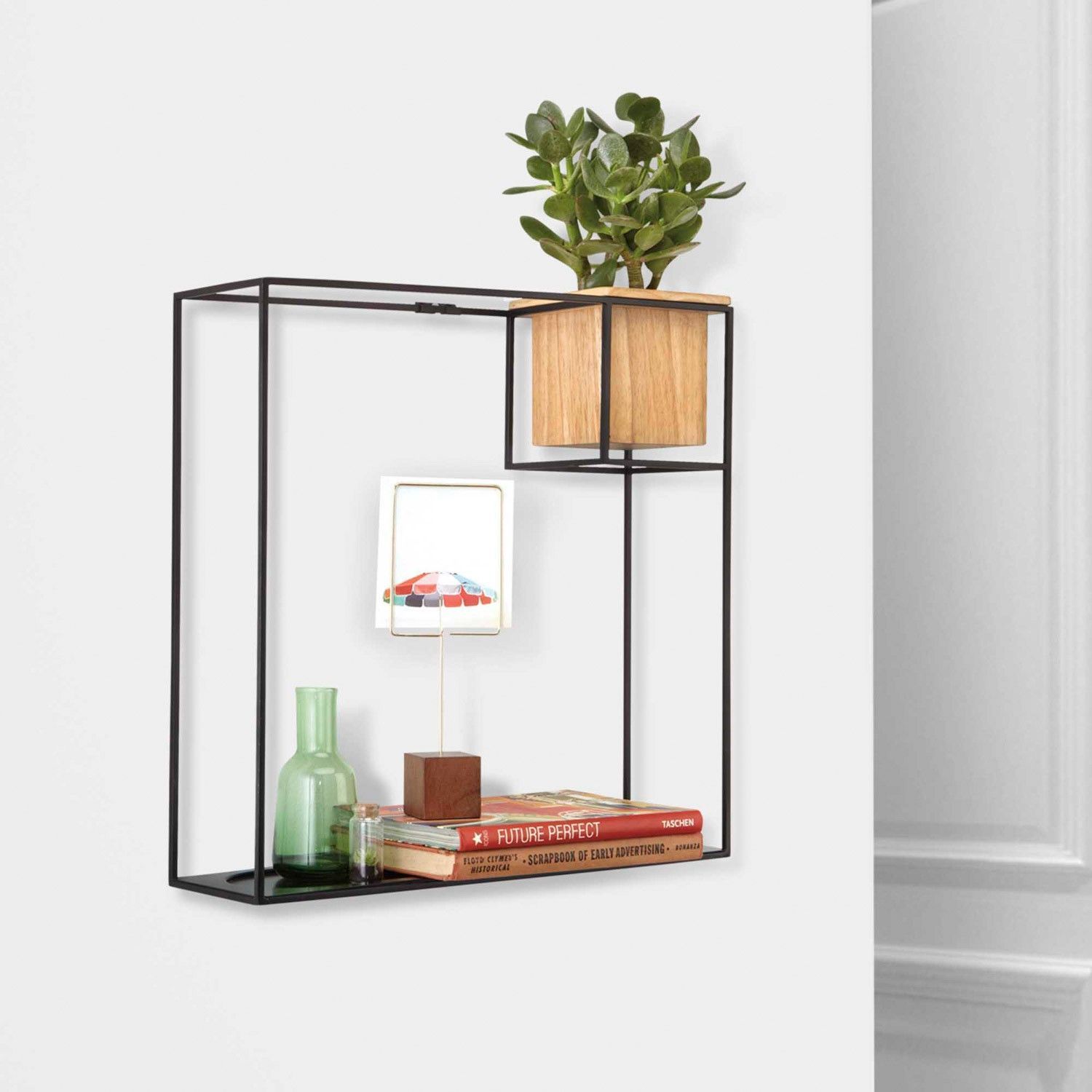 Umbra 470754-427 Wandregal Cubist mit Pflanzentopf - Metall Bücherregal & Blumentopf