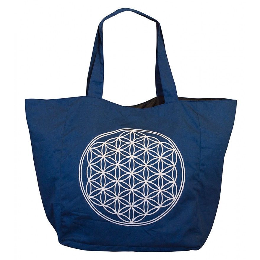 Saraswati Umhängetasche BLUME DES LEBENS blau 48 x 33 cm Henkeltasche Tragetasche