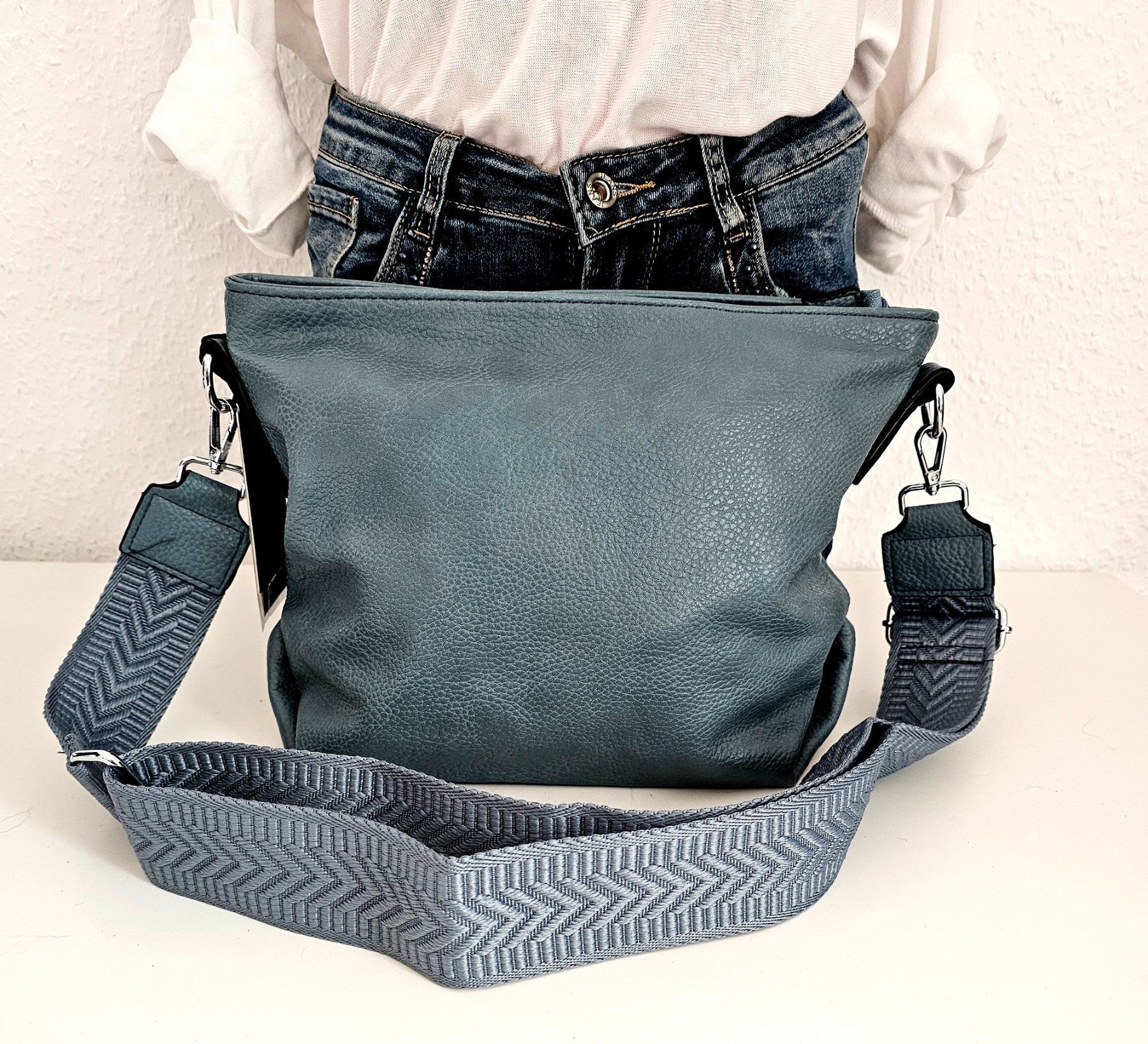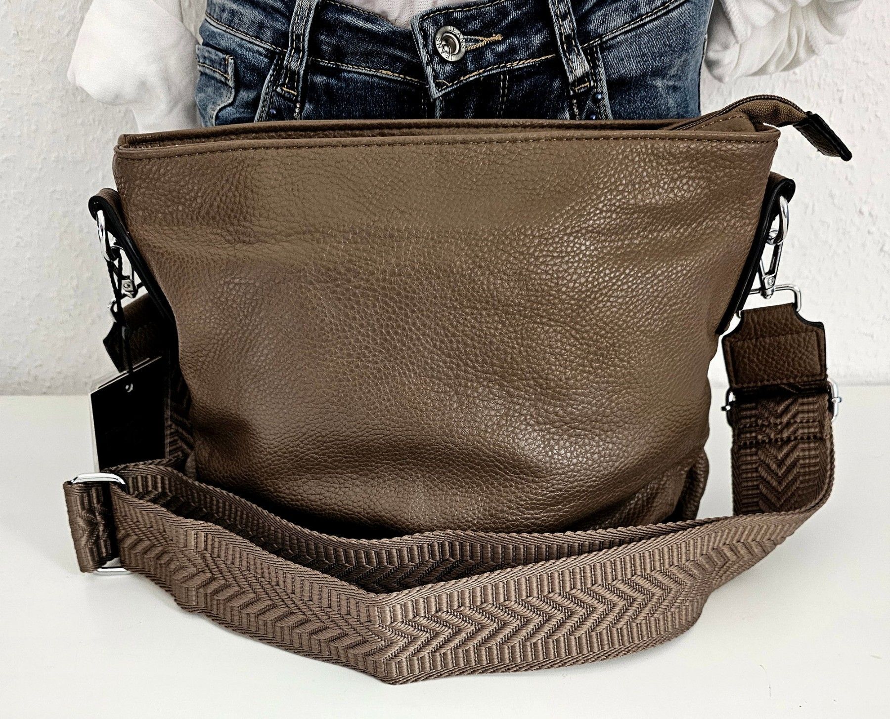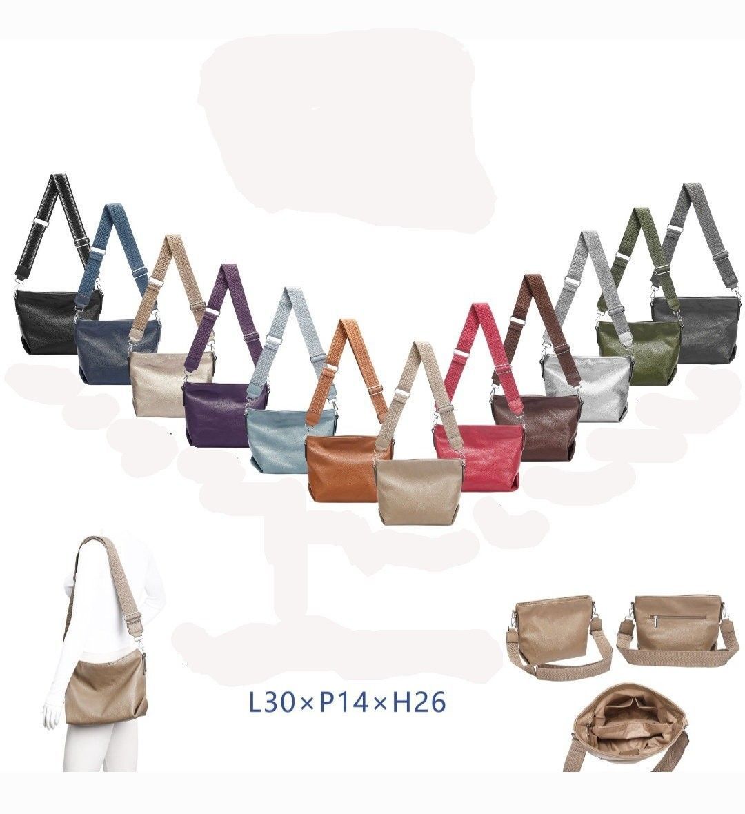 Umhängetasche Schultertasche Cross Body Bag Kunstleder breiter Gurt 12 Farben