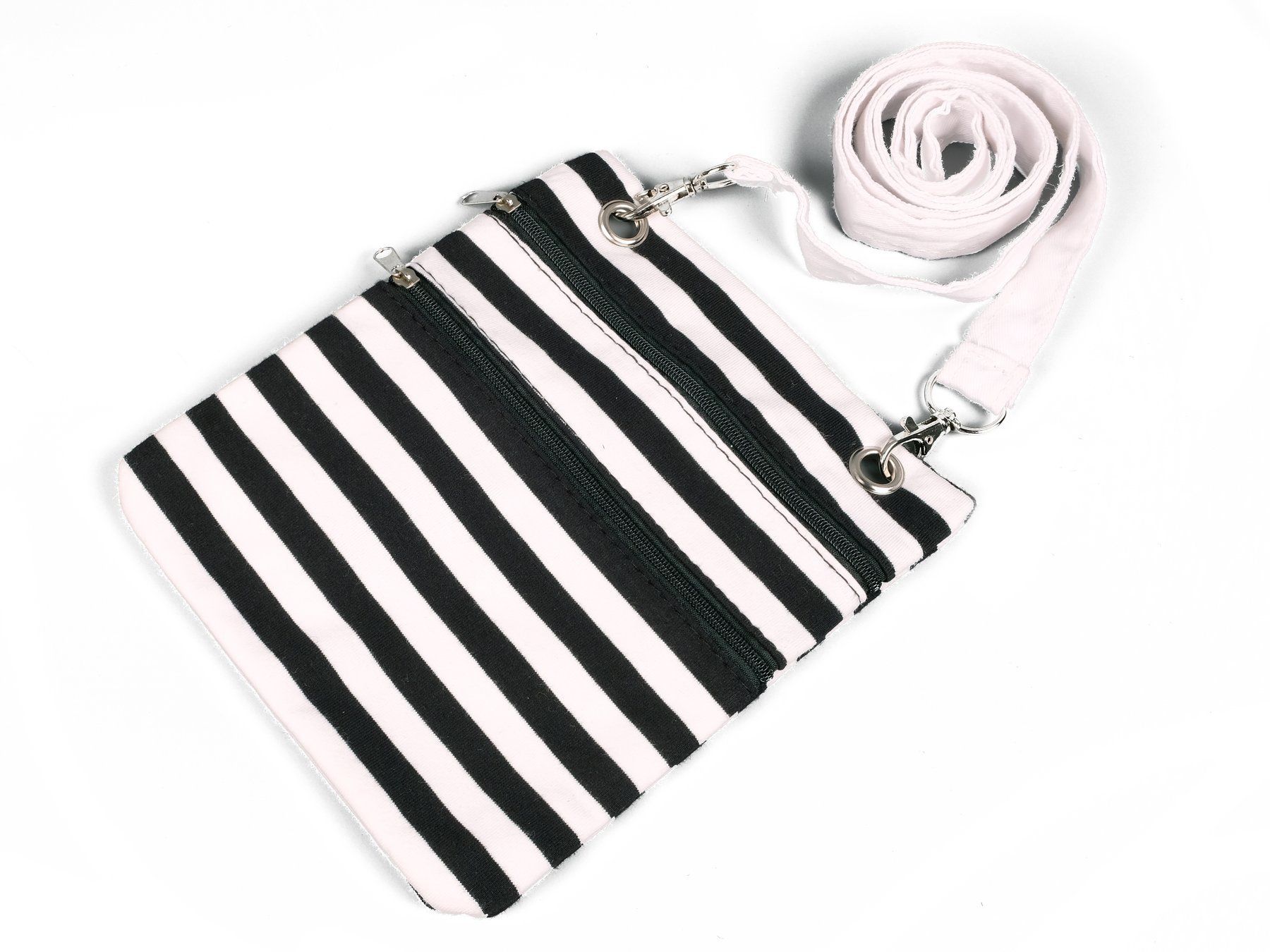 Umhängetasche Tasche schwarz weiß gestreift Harlekin Pantomime Karneval Fasching