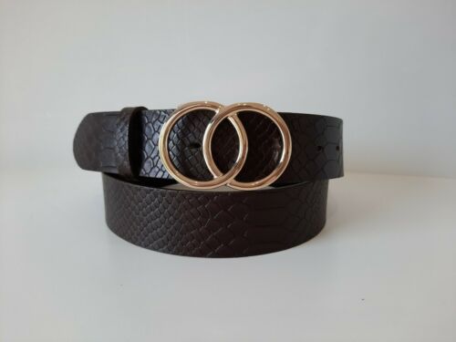 umjuBELT Gürtel Amarillo dark brown Der Gürteltrend, wenn Frau flexibel sein möchte. Mit auswechselbaren Schnallen. Vollrindleder hochwertig gefärbt und geprägt in Snake Optik Breite: 4cm Farbe: dunkel braun Material: softes Echtleder Rinderleder Lieferbar in den Längen 80, 85, 90,100 Bitte fragen S