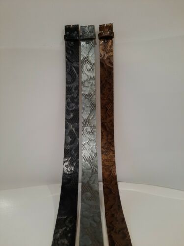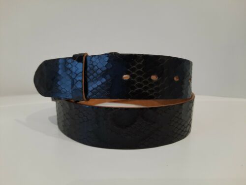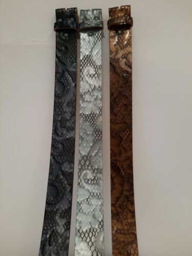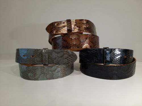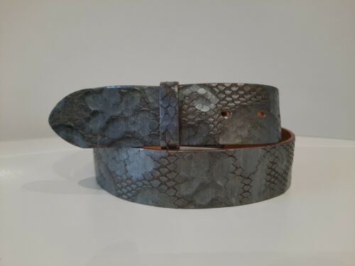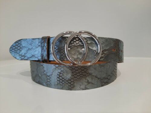 umjuBELT Gürtel King Snake Der Gürteltrend, wenn Frau flexibel sein möchte. Mit auswechselbaren Schnallen. Vollrindleder hochwertig geprägt und gefärbt mit Metallic-Effekten. Breite: 4cm Material: Echtleder Farbe und Länge nach Wahl Lieferbar in den Längen 80, 85, 90, 95, 100 Bitte fragen Sie fehlen