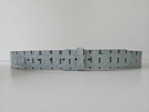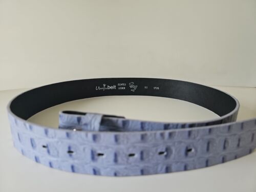 umjuBELT Gürtel Marcado Der Gürteltrend, wenn Frau flexibel sein möchte. Mit auswechselbaren Schnallen. Hochwertiges Rindleder geprägt Breite: 4cm Material: Echtleder Farbe: Hellblau Salbei Flieder Länge nach Wahl Lieferbar in den Längen 80, 85, 90, 95, 100 Bitte fragen Sie fehlende Größen an. Diese