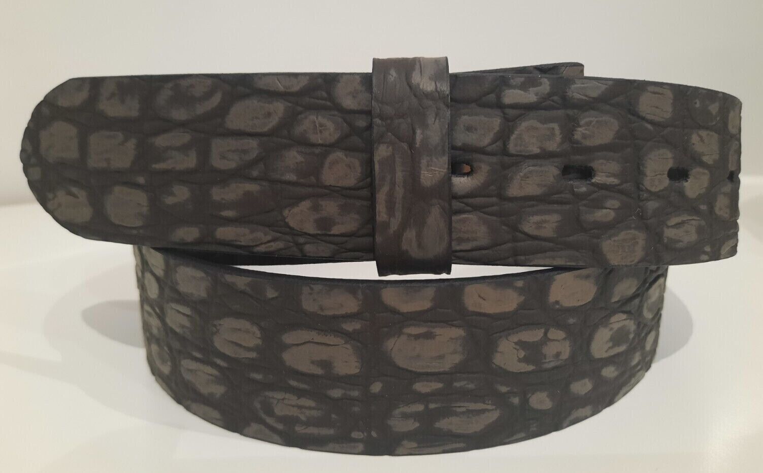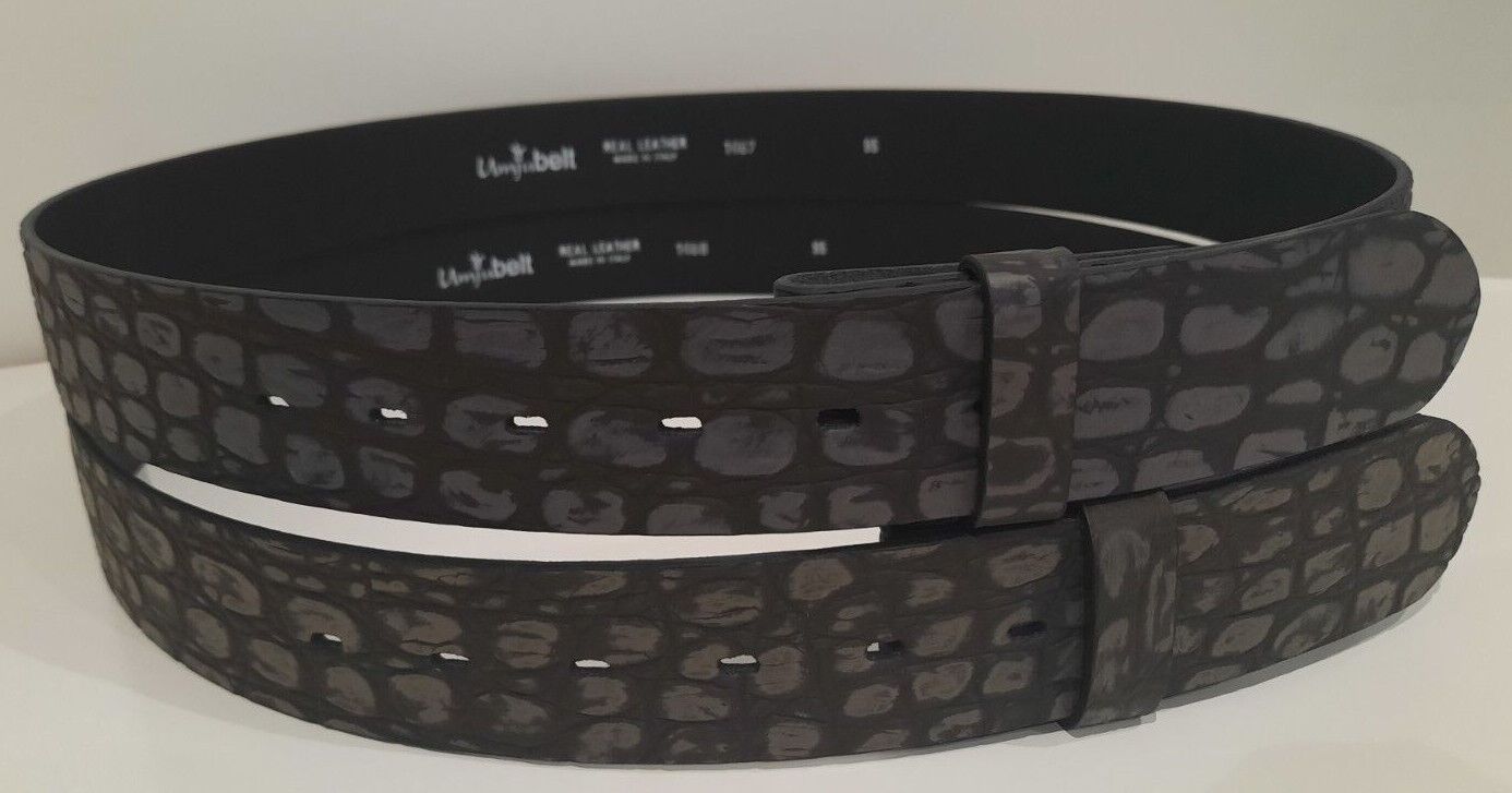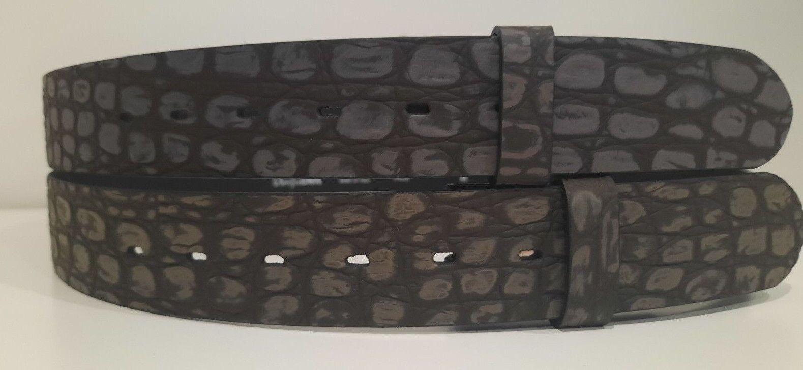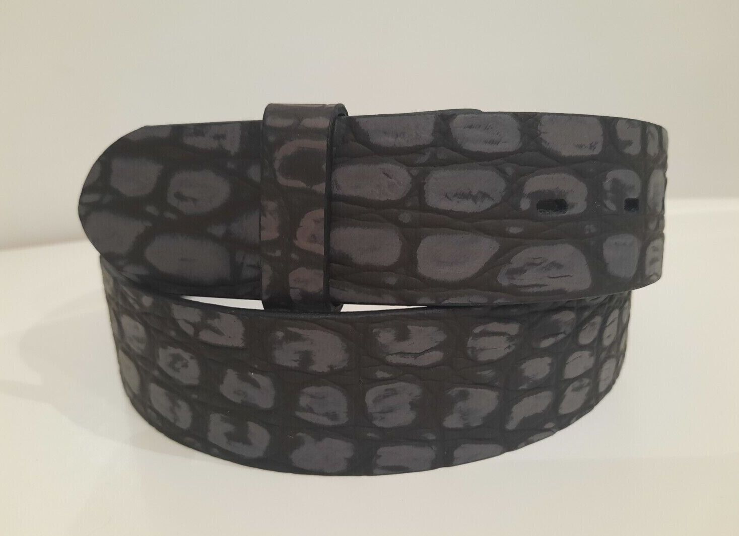 umjuBELT Gürtel Tusko grey taupe Der Gürteltrend, wenn Frau flexibel sein möchte. Mit auswechselbaren Schnallen. Hochwertiges Rindleder bombiert und abgesteppt mit Kroko-Prägung Breite: 4cm Material: Echtleder Farbe und Länge nach Wahl Lieferbar in den Längen 80, 85, 90, 95, 100, 105 Bitte fragen Si