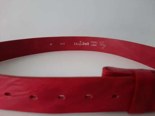 umjuBELT Gürtel Wave fuxia Der Gürteltrend, wenn Frau flexibel sein möchte. Mit auswechselbaren Schnallen. Vollrindgürtel leicht gewellt mit matter Oberfläche. Breite: 4cm Farbe: pink Material: Echtleder Lieferbar in den Länge 80, 85, 95, 100 Dieses Angebot beinhaltet den Gürtel (keine Schließe), ei