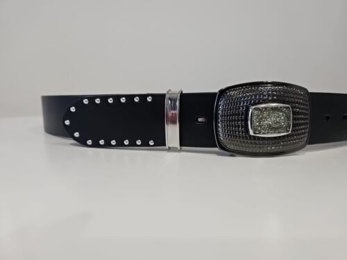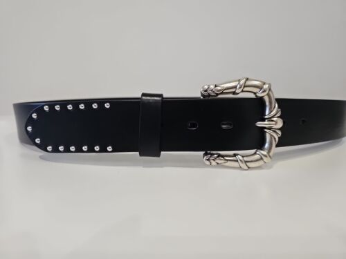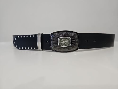umjuBELT Gürtel West Cape mini Niete Der Gürteltrend, wenn Frau oder Mann flexibel sein möchte. Mit auswechselbaren Schnallen. Vollrindleder mit glatter, leicht glänzender Oberfläche und Nieten Breite: 4cm Farbe: schwarz Material: Echtleder Besonderheiten: unisex Lieferbar in den Längen 80, 85, 90,