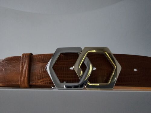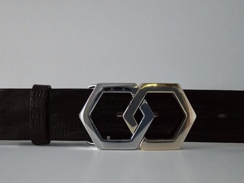 umjuBELT Gürtelschnalle - Gürtelschließe Pentagram gold black Details: 8 x 5 cm Hochglanz Farbe nach Auswahl: schwarz-silber oder gold-silber Für alle 4cm breite Wechselgürtel mit Druckknopfsystem Made in Italy by Umjubelt nickelfrei Neuware Die Lieferung umfasst eine Gürtelschnalle nach Wahl!!! Vie