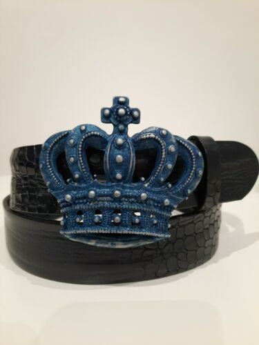 umjuBELT Gürtelschnalle Schließe Buckle Krone blau rose 8,5 x 8 cm