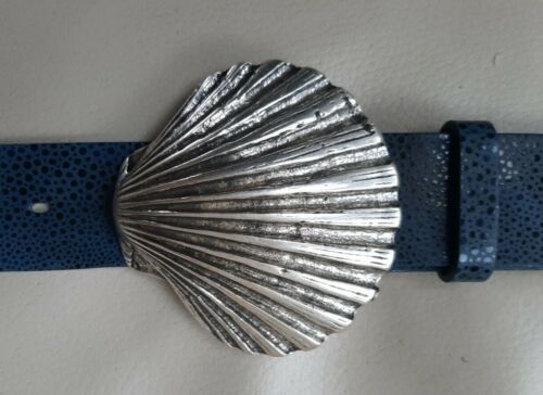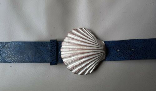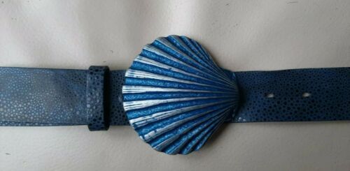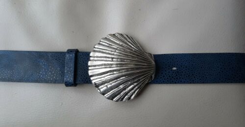 umjuBELT Gürtelschnalle Schließe Buckle Muschel groß blau silber rose 8x9 cm