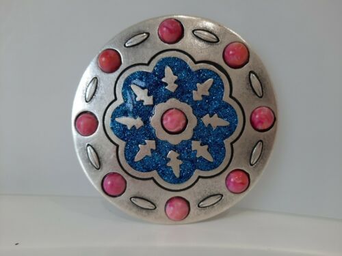 umjuBELT Gürtelschnalle - Gürtelschließe´ Indian pink Dance Details: Silber-Pink-Blau Glitzer 9 cm Für alle 4cm breite Wechselgürtel mit Druckknopfsystem Made in Italy by Umjubelt nickelfrei Neuware Die Lieferung umfasst nur die Gürtelschnalle!!! Vielen Dank für Ihr Interesse!! Schauen Sie hier auch