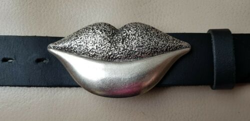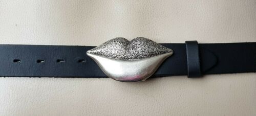 Umjubelt Kiss Mund silber matt Gürtelschnalle Gürtelschließe Buckle 10,5x5cm