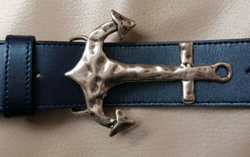 Umjubelt silber Gürtelschnalle Gürtelschließe Buckle Anker Maritim 9,5 x 7,5 cm