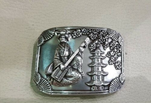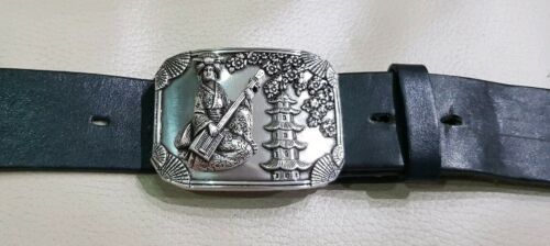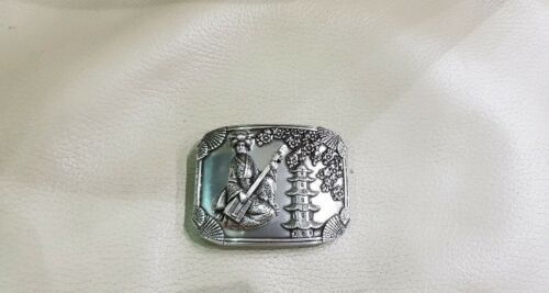 Umjubelt silber Gürtelschnalle Schließe Buckle „Japanese” 7x6cm neu
