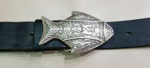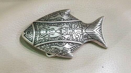 Umjubelt silber Gürtelschnalle Sternzeichen „Dream Fish" Fisch Maritim 9,5x6cm