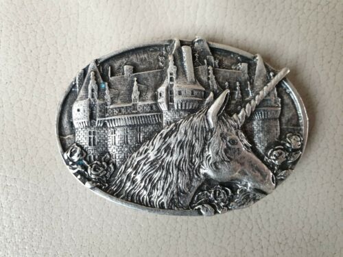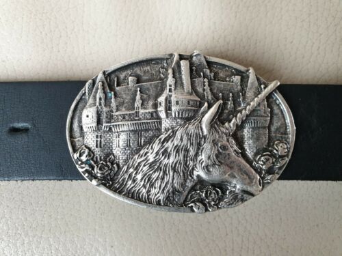 umjuBELT Unicorn Castle Einhorn silber Gürtelschnalle Schließe Buckle 8,5x6cm