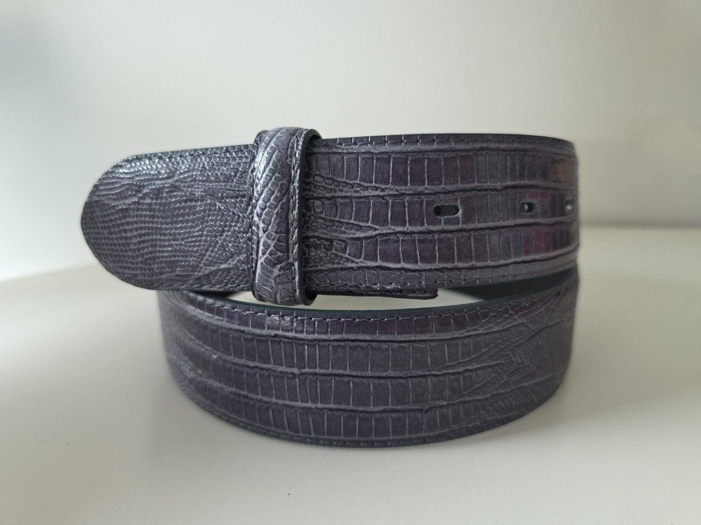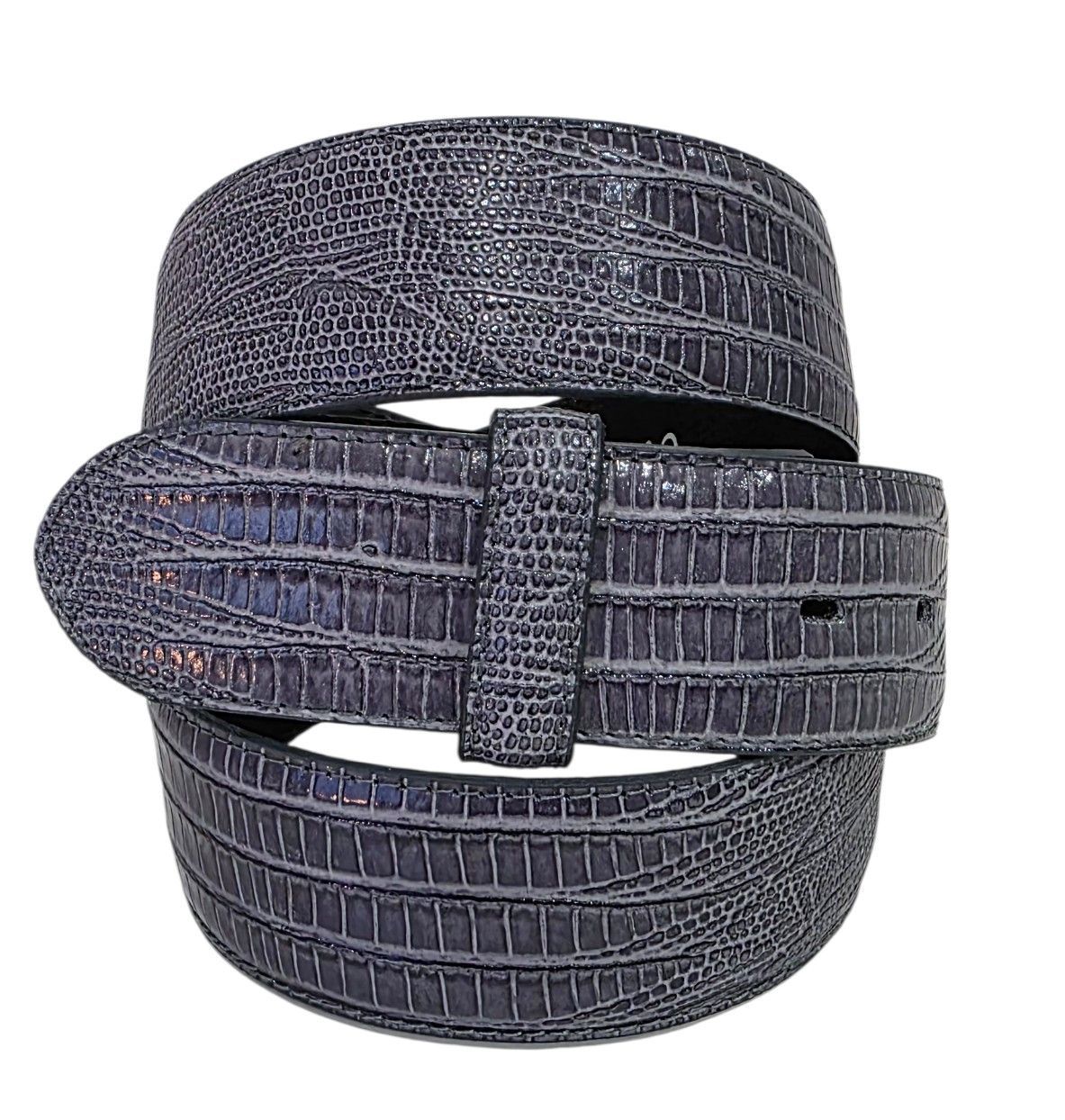 umjuBELT Wechselgürtel Reptile Grey Grau / Jeansblau Echt Leder 80 85 90 95 100 105