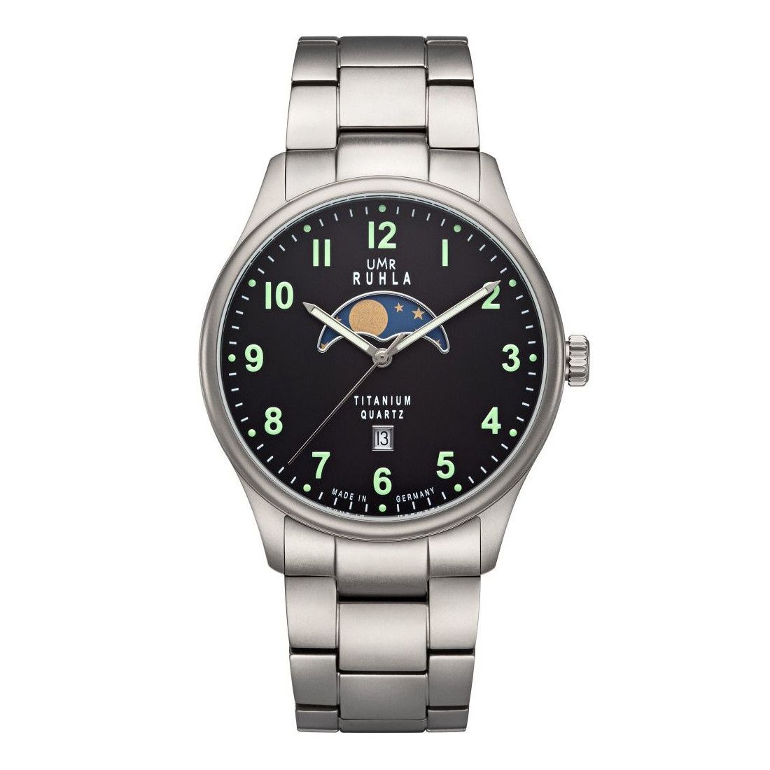 UMR Ruhla Mondphase Herren Armbanduhr Titan 20911 Datum Titangliederband