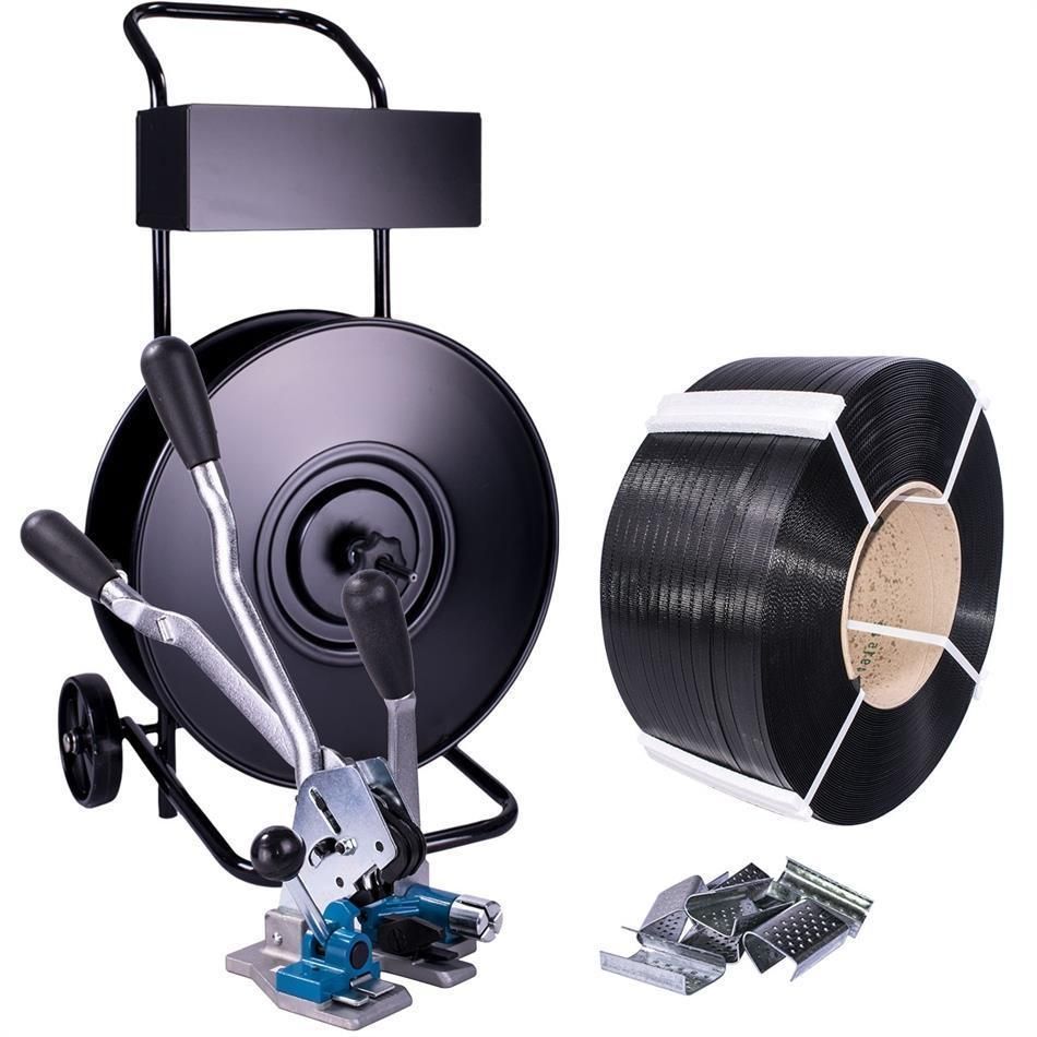 Umreifungsset mit 16mm PP Band Umreifung Umreifungsgerät Abrollwagen Hülsen