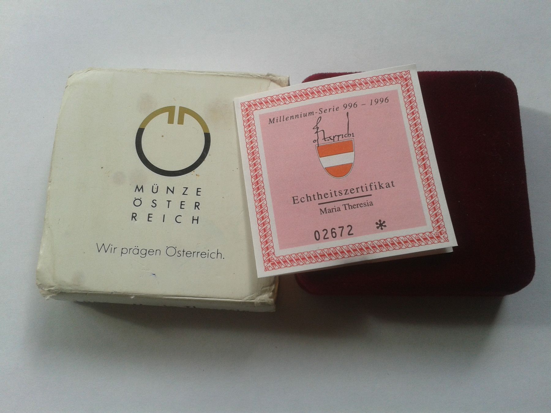 Umverpackung, Zertifikat + Etui für 1000 Schilling 1993 Maria Theresia Gold - NO coin