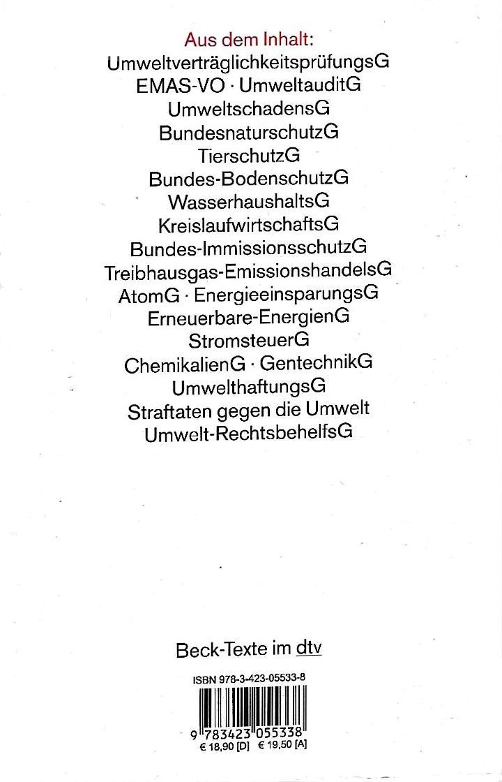 Titel: Umweltrecht – Wichtige Gesetze und Verordnungen zum Schutz der Umwelt 2018