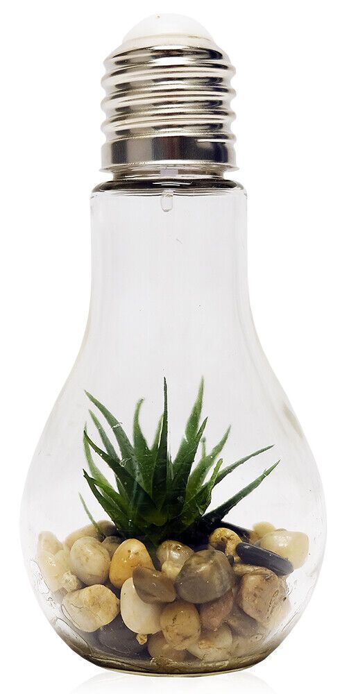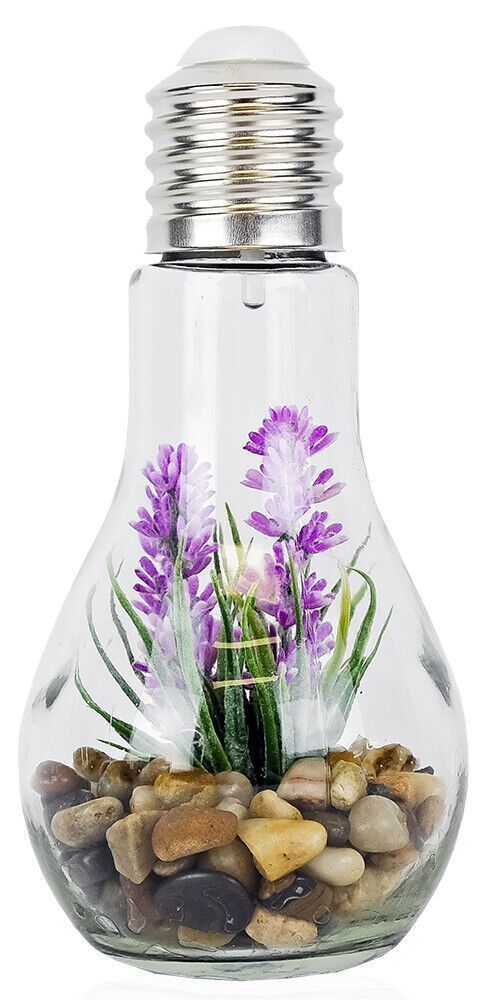 Hübsche Set aus 4 Deko-Glas-Birnen, beleuchtet, mit Kunstpflanze. Alle sind beleuchtet und können an der Oberseite ein oder ausgeschaltet werden. Die Deko-Birnen verfügen über eine ca 40 cm lange Aufhängung mit Hacken. Die Größe je Glühbirne beträgt etwa 18 cm x 9 cm (Höhe x Durchmesser) Material: G