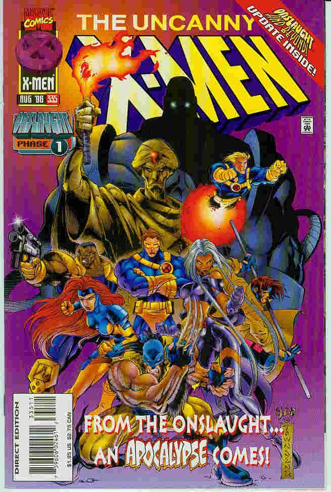 Uncanny X-Men 335 Verlag * publisher : Marvel Comics USA Erscheinungsjahr * year of issue: 1996 (Modern Age) Seitenzahl * number or pages: 32 Texter * writer: Scott Lobdell Zeichner * artists (pencils inks): Joe Madureira Tim Townsend schwarz-weiß oder Farbe * bw or colour: colour Hinweise zum Inhal
