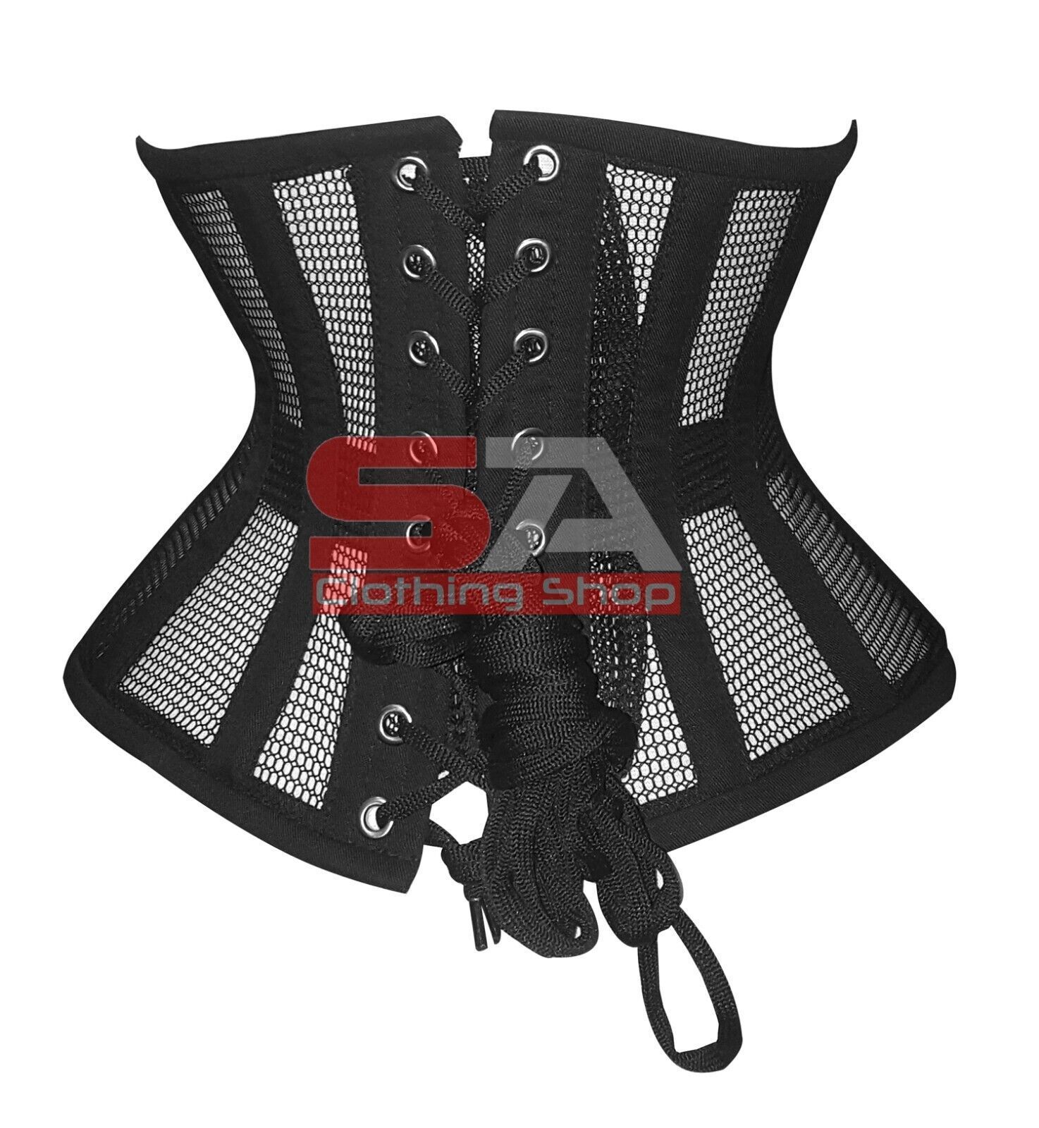 Underbust Corset black Mesh Gothic Steel Boned Victorian Waist Cincher C49MC