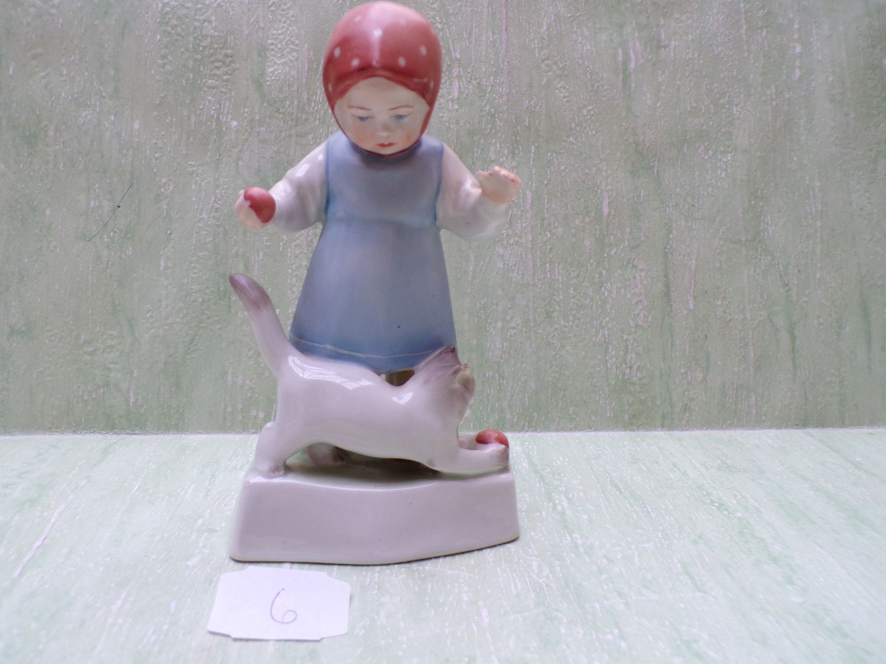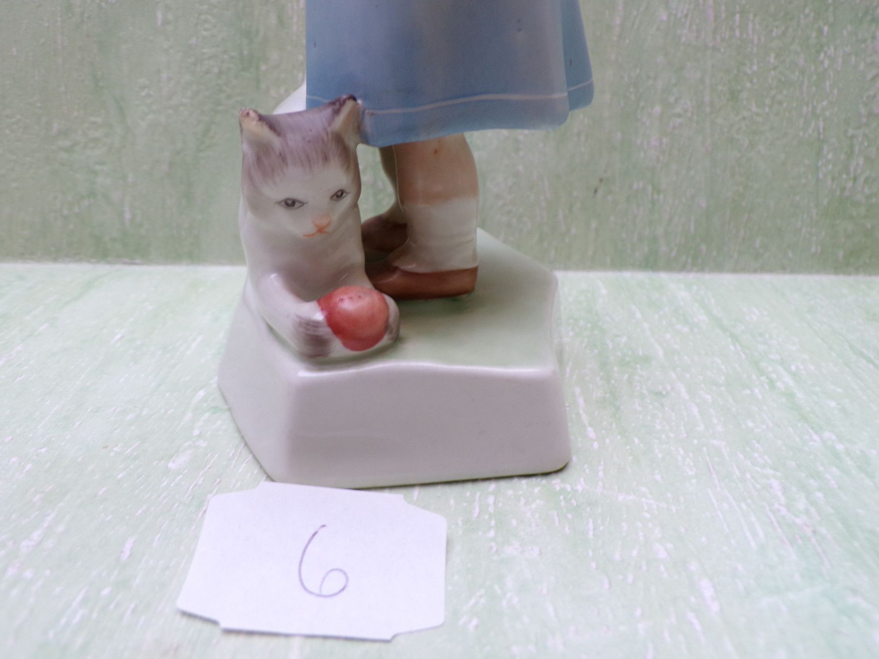 4: lesend mit Katze ca 19cm, 5: Kreisel ca 12cm, 6: Katze ca 14,5cm, 7: Ball ca 14cm, 8: Holzsammler ca 15,5cm BM "grau"PECS