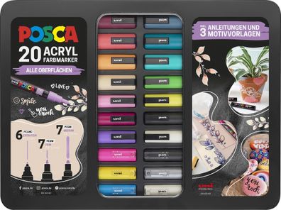 uni-ball 186817 POSCA Marker Malkoffer Klassik 20 Acrylstiften für viele Oberflächen