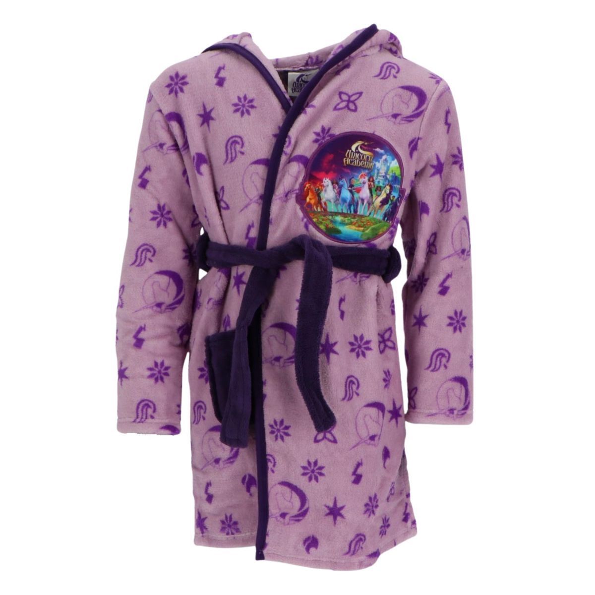 Unicorn Academy Bademantel mit Kapuze Gürtel & Tasche für Mädchen Rosa
