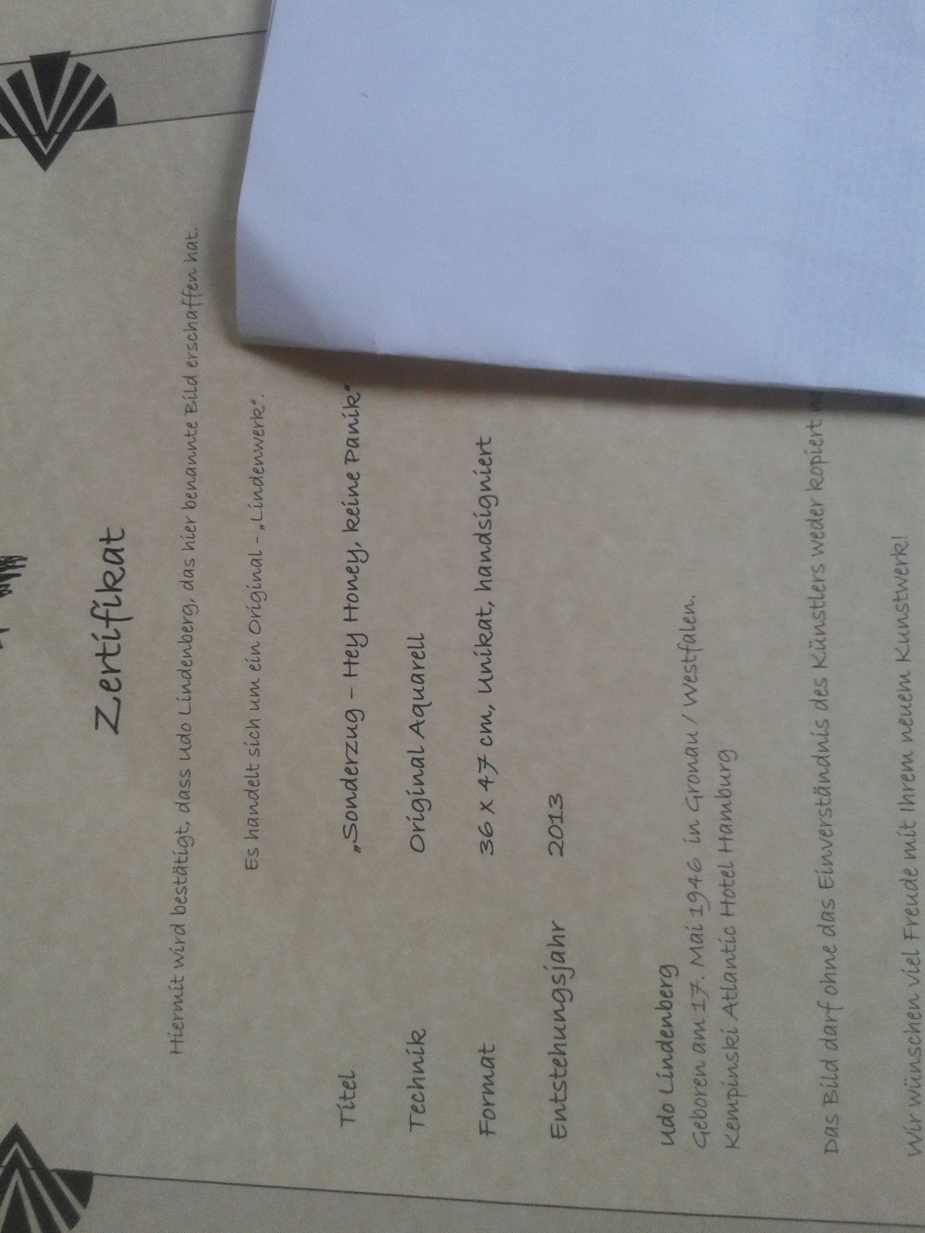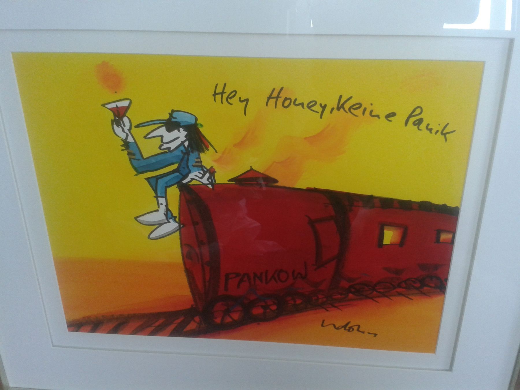 UNIKAT: Original Aquarell Udo Lindenberg Hey Honey keine Panik Sonderzug nach Pankow