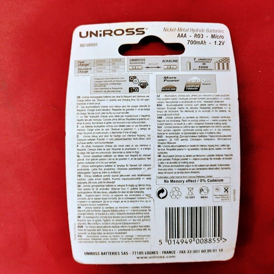 Uniross Mikro AAA 1,2V 700mAh Akku Batterien 1000x Wiederaufladbar Restposten