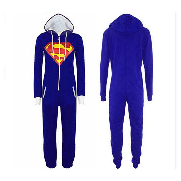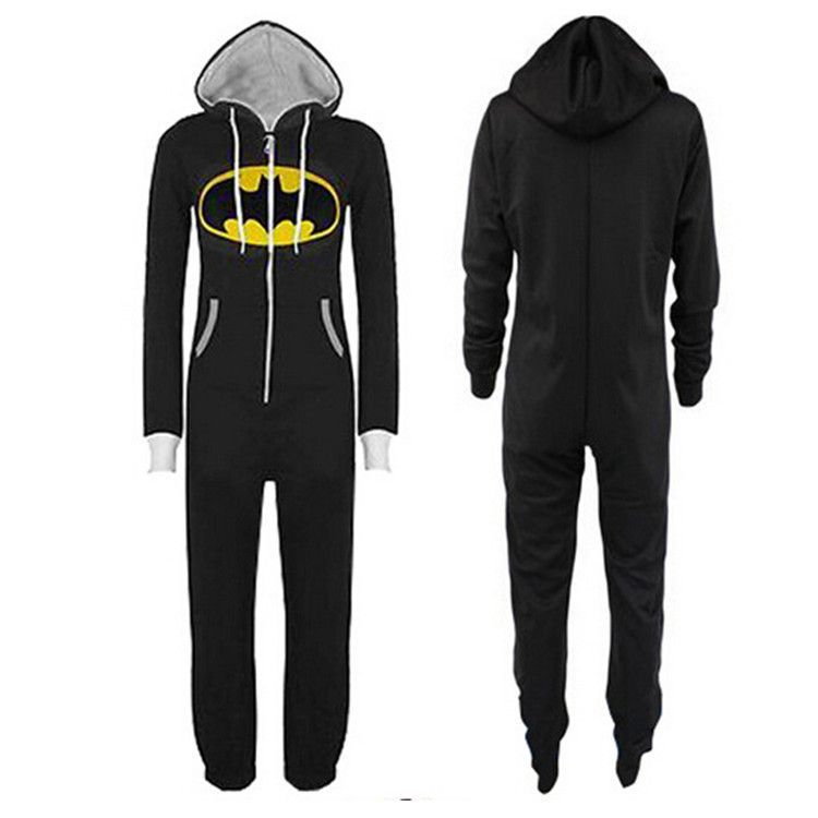 Unisex Batman One-Piece Hooded Pyjama Winter Superman Cosplay Kostüm Schlafanzug