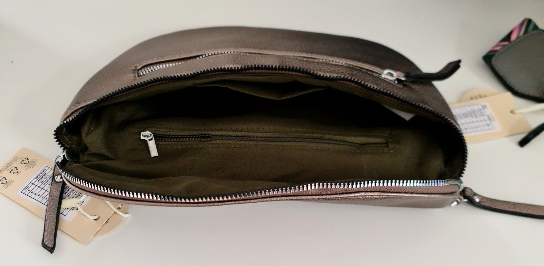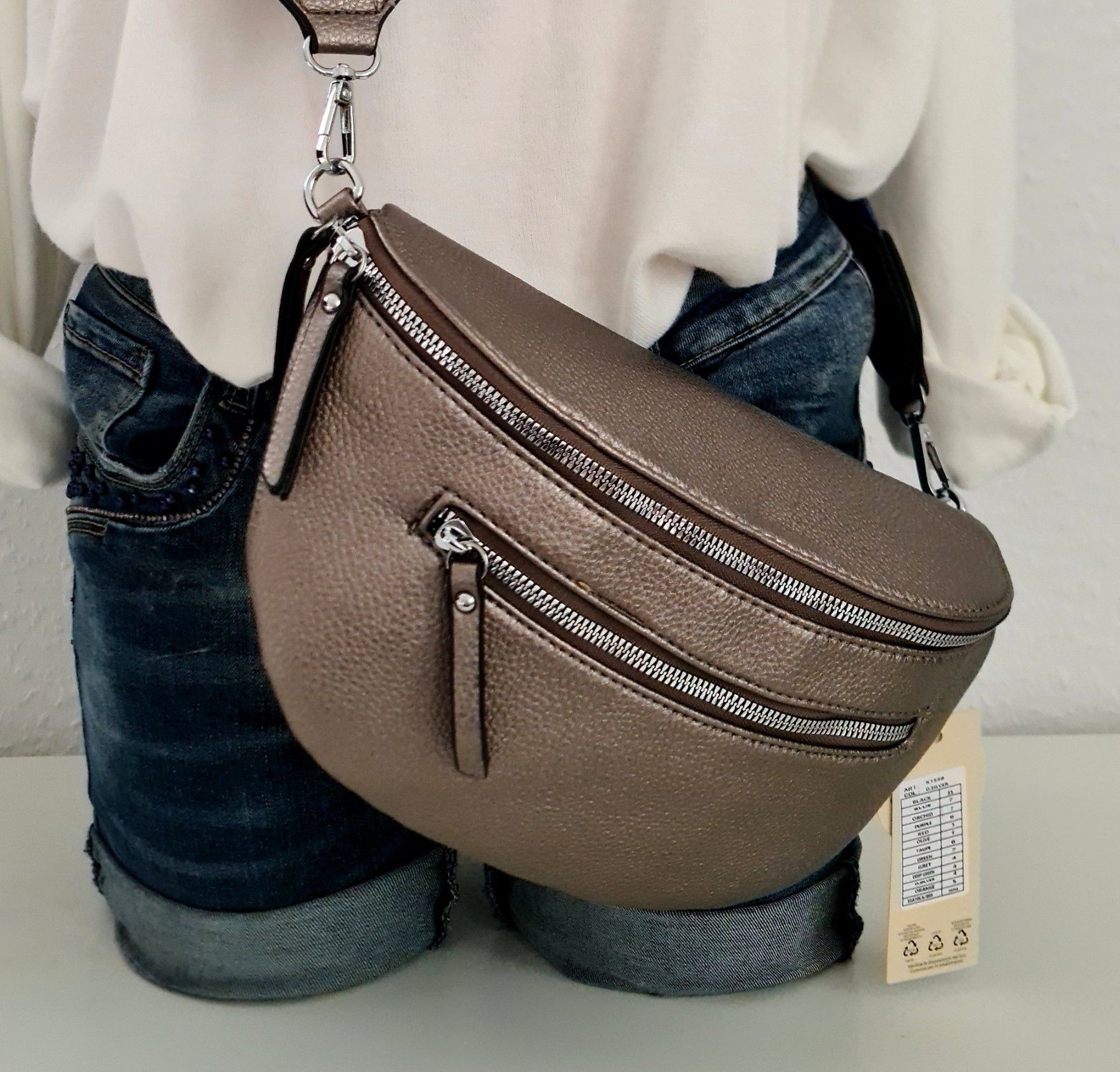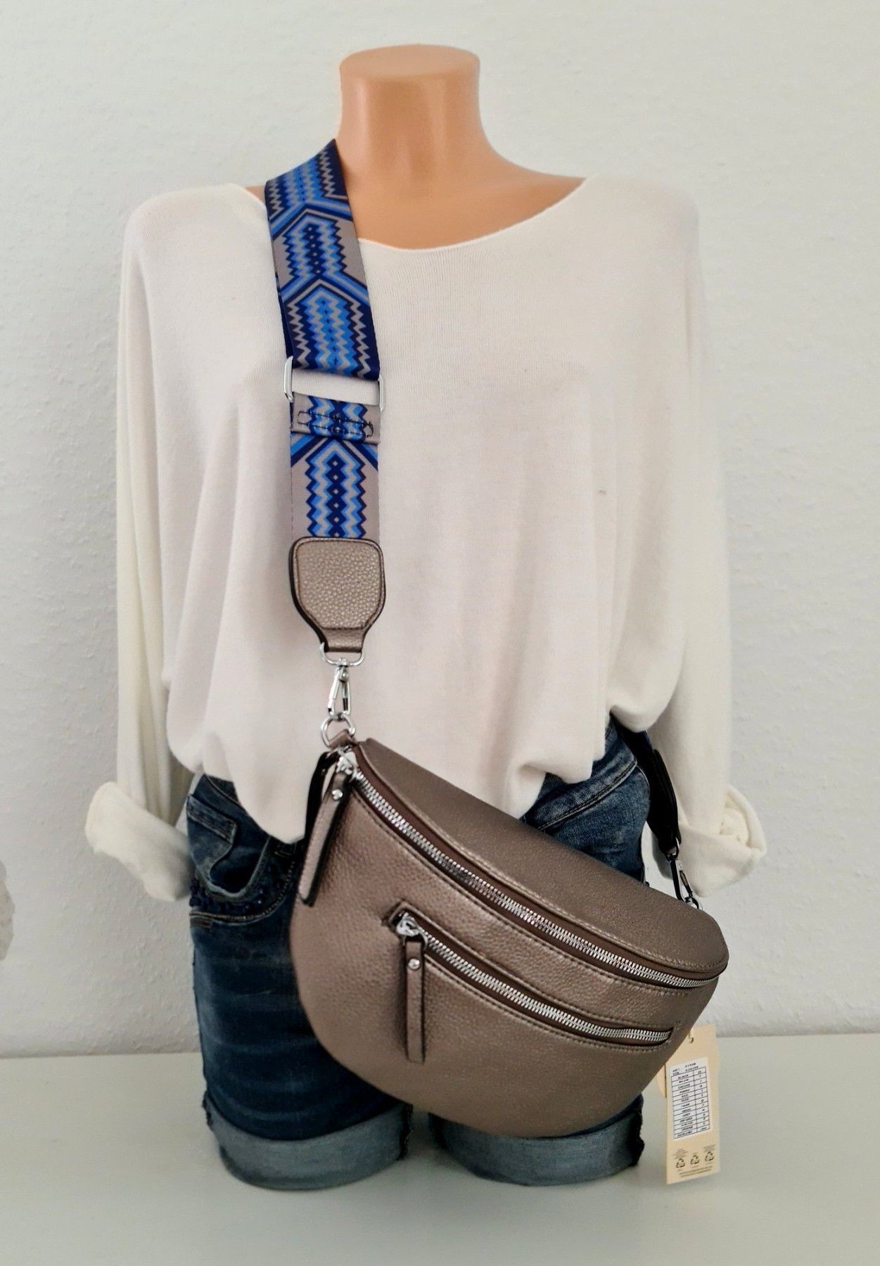 Unisex Bauchtasche Tasche Cross Body Bag Kunstleder bunter Gurt Farbe: Bronze