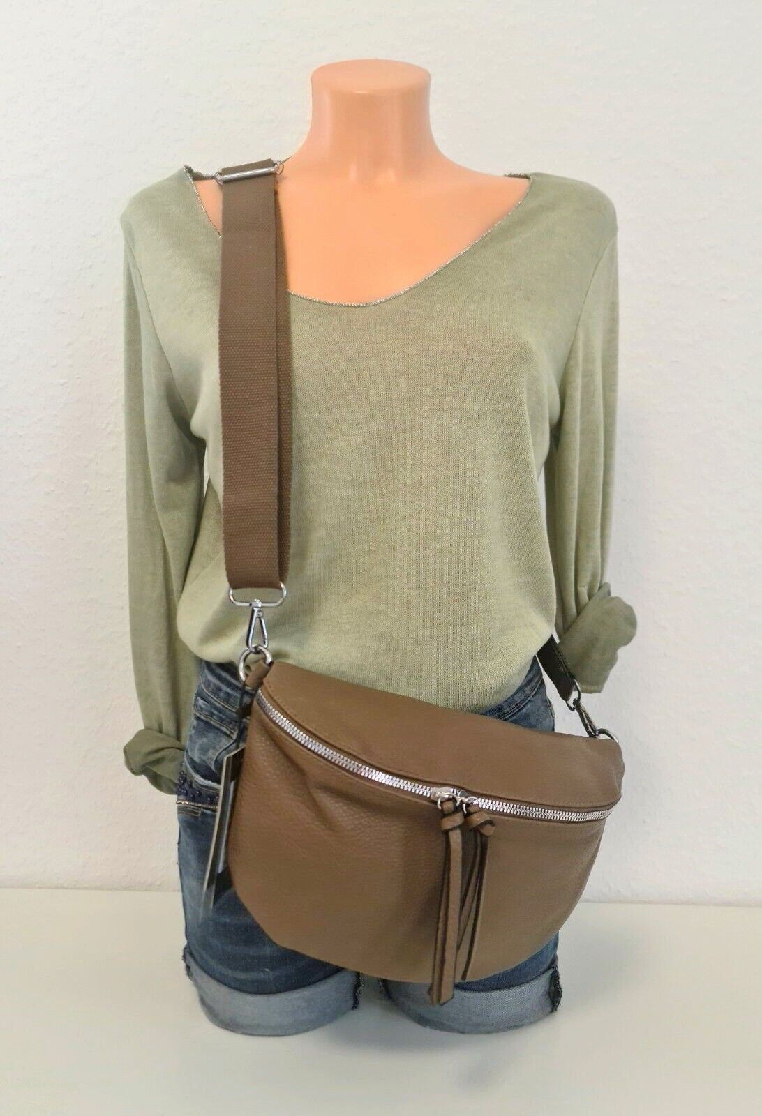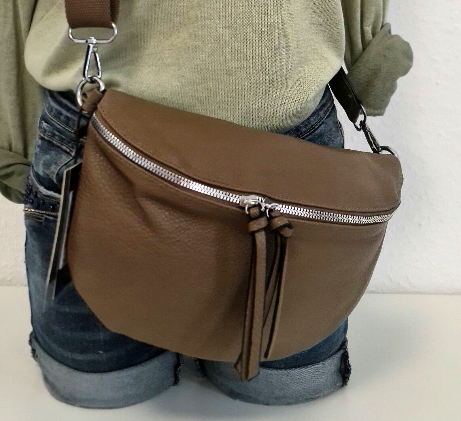 Unisex Bauchtasche Tasche Cross Body Bag Kunstleder einfarbiger Gurt in Taupe