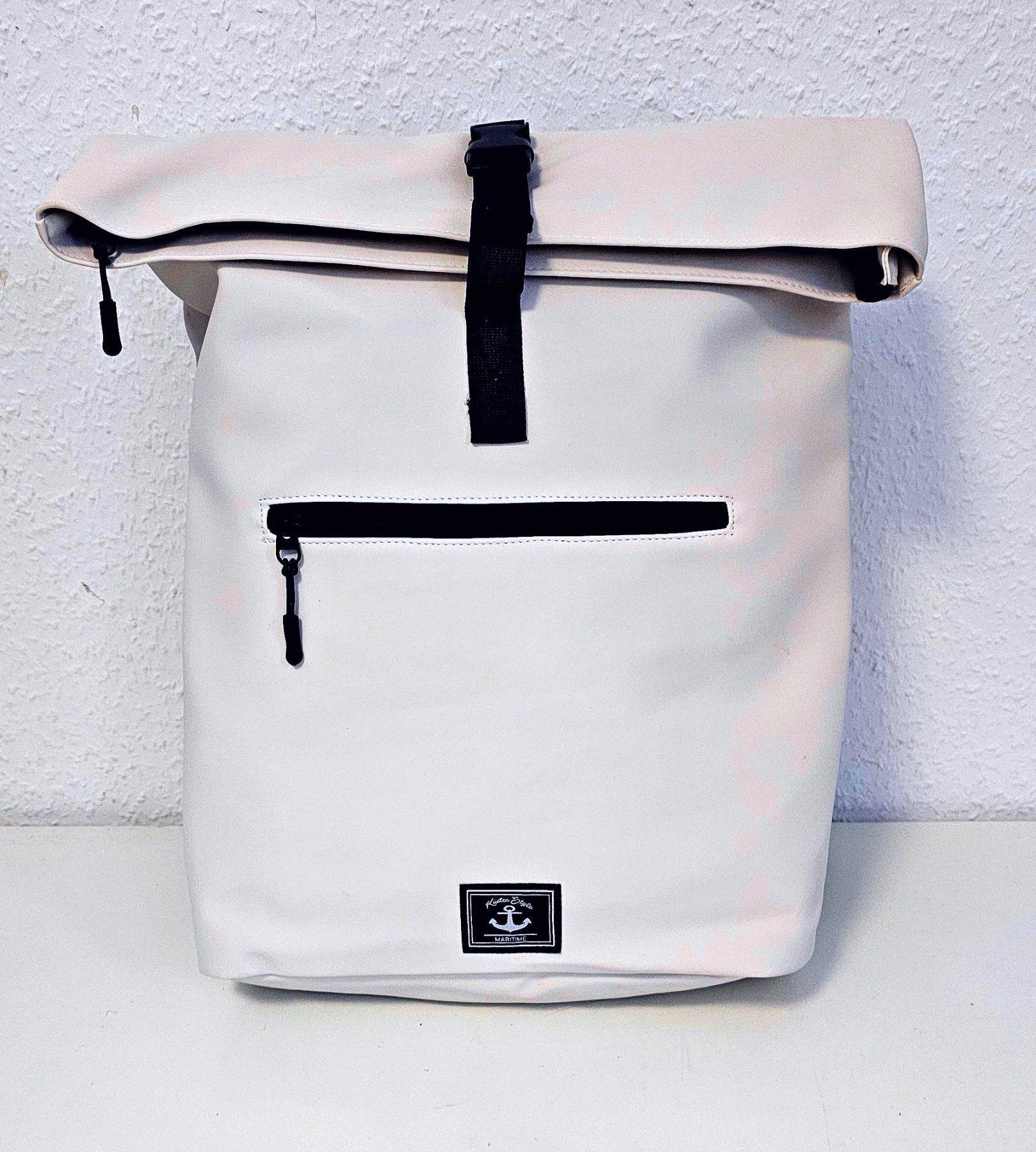 Unisex großer Rolltop Rucksack Freizeit Reisen Arbeit Outdoor Wasserdicht Wollweiß