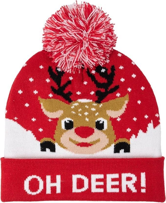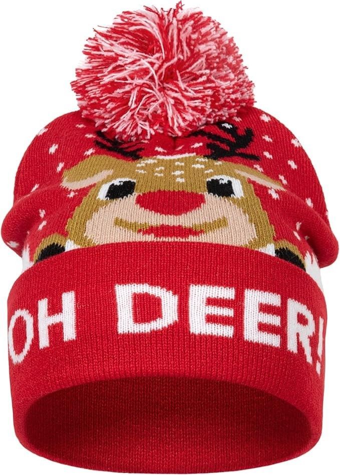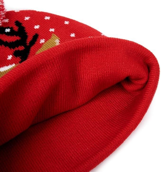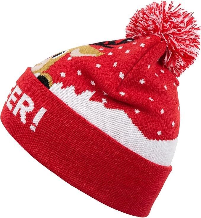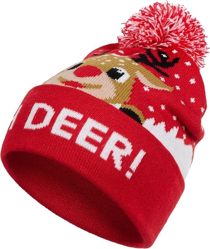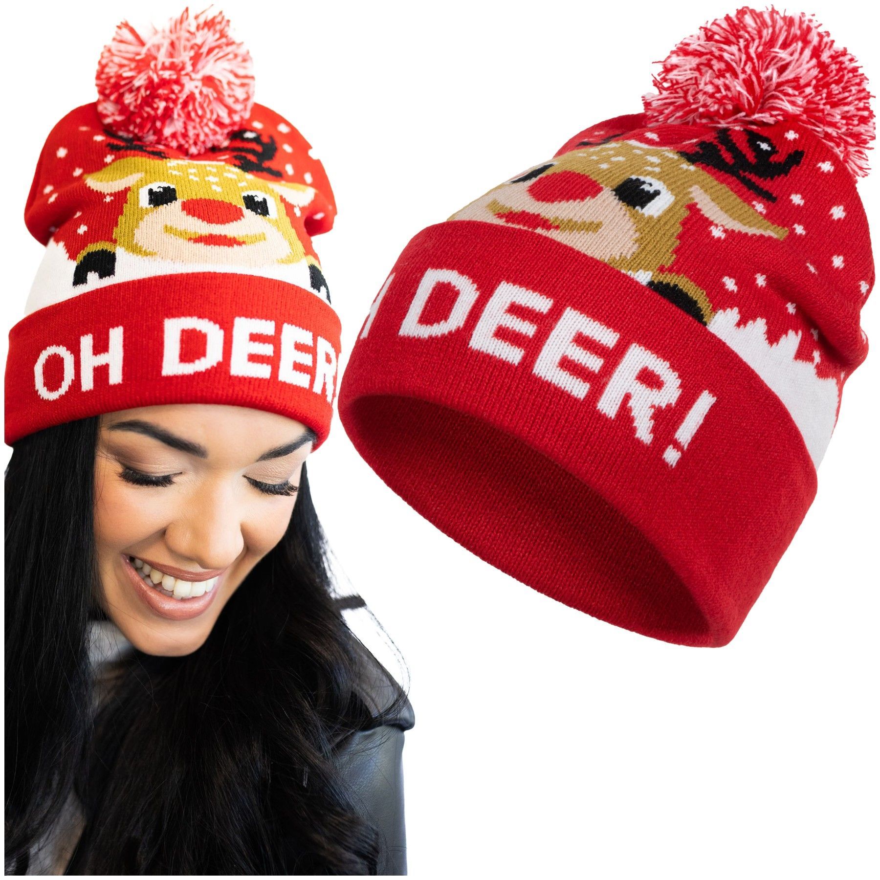 Unisex HEYO Strickmütze Bommel Rentier Wintermütze Damen Herren Weihnachtsmütze