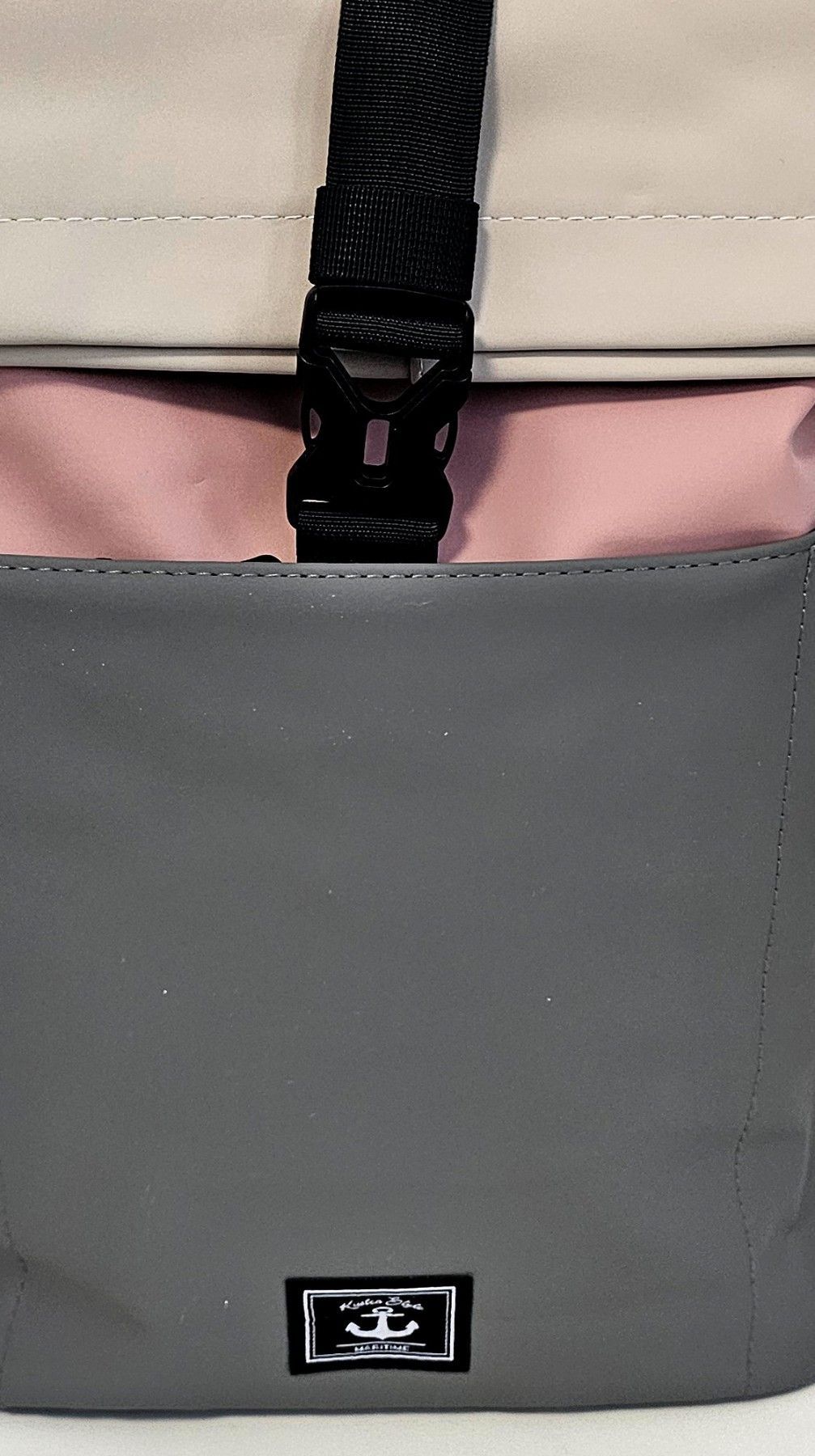 Unisex Rolltop Rucksack Freizeit Arbeit Wasserdicht dreifarbig Grau/Beige/Altrosa