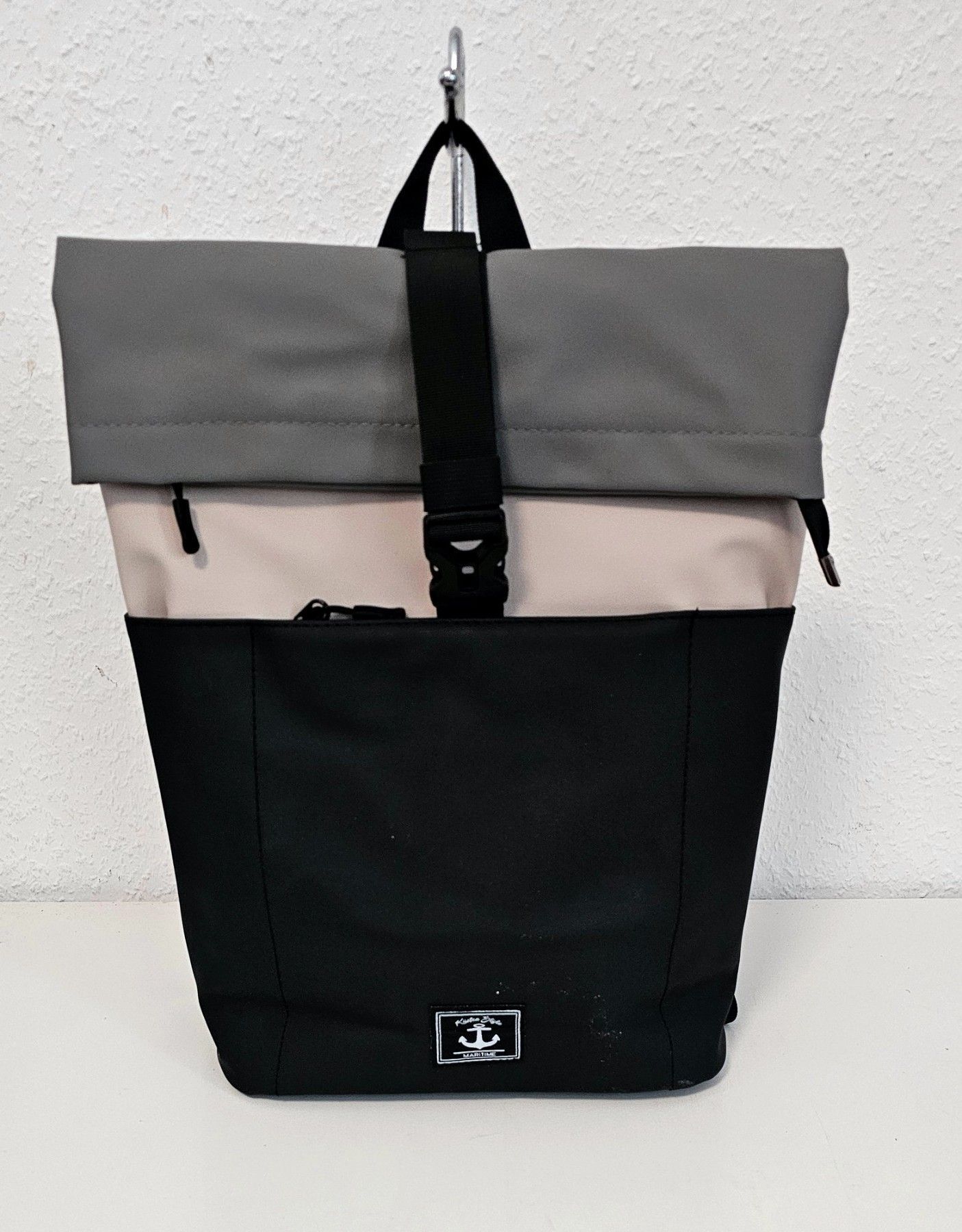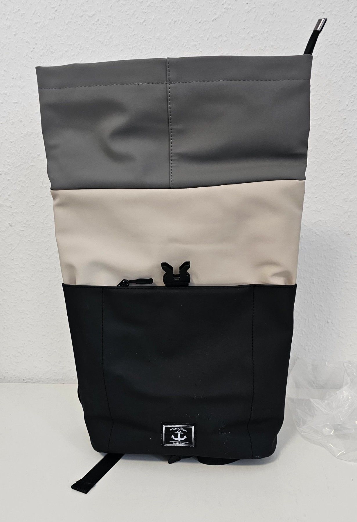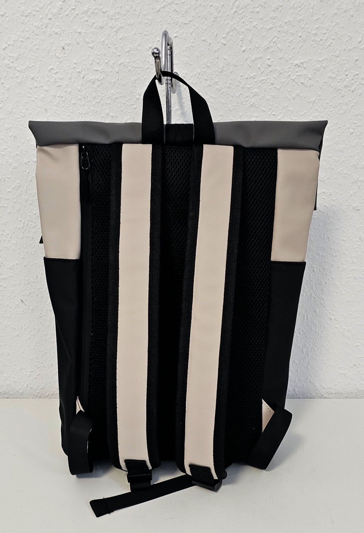 Unisex Rolltop Rucksack Freizeit Arbeit Wasserdicht dreifarbig Grau/Beige/Schwarz