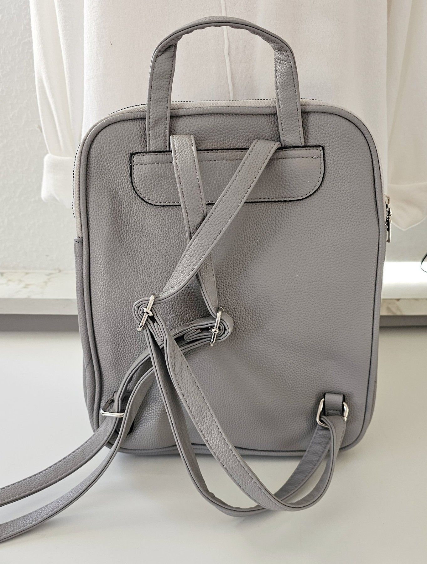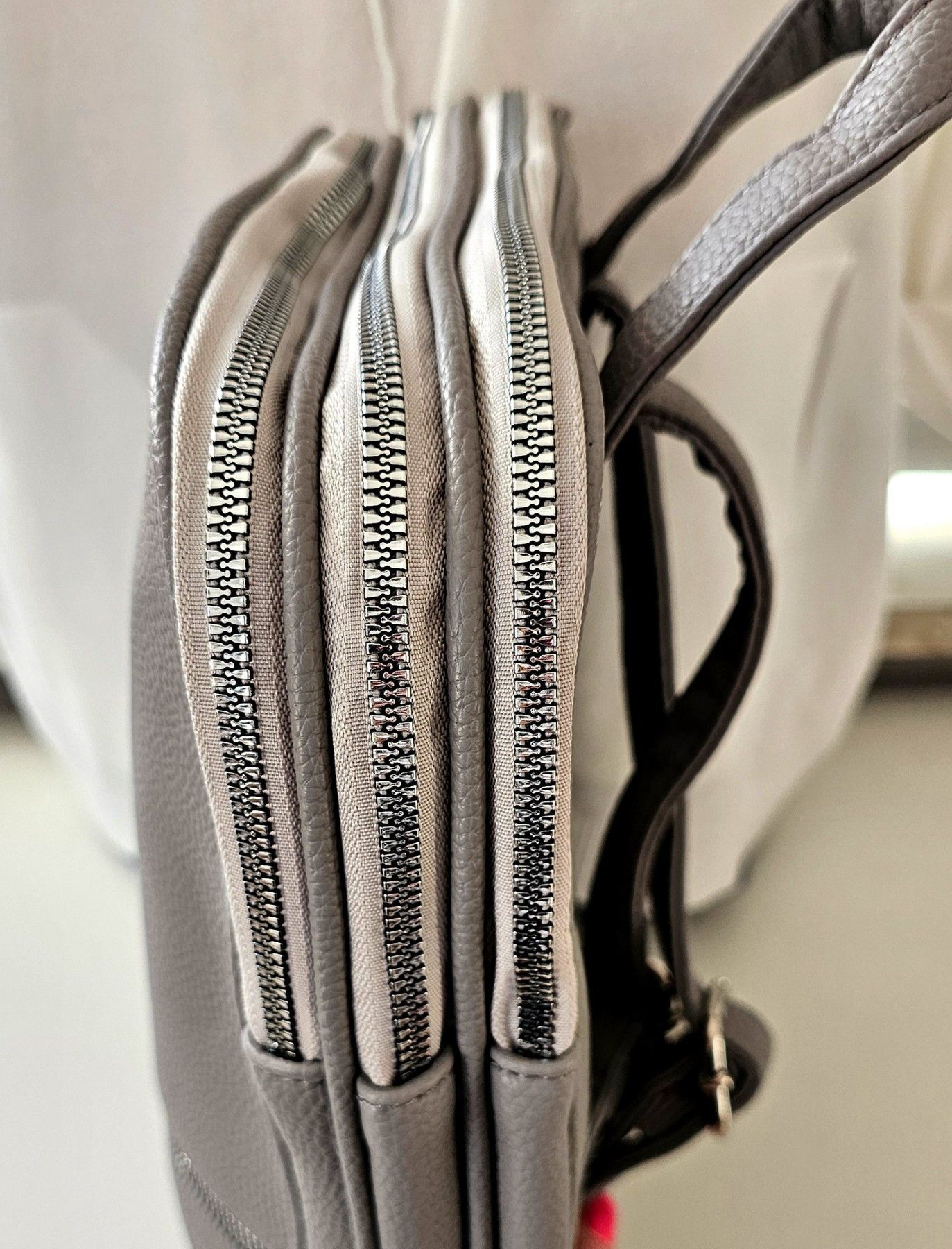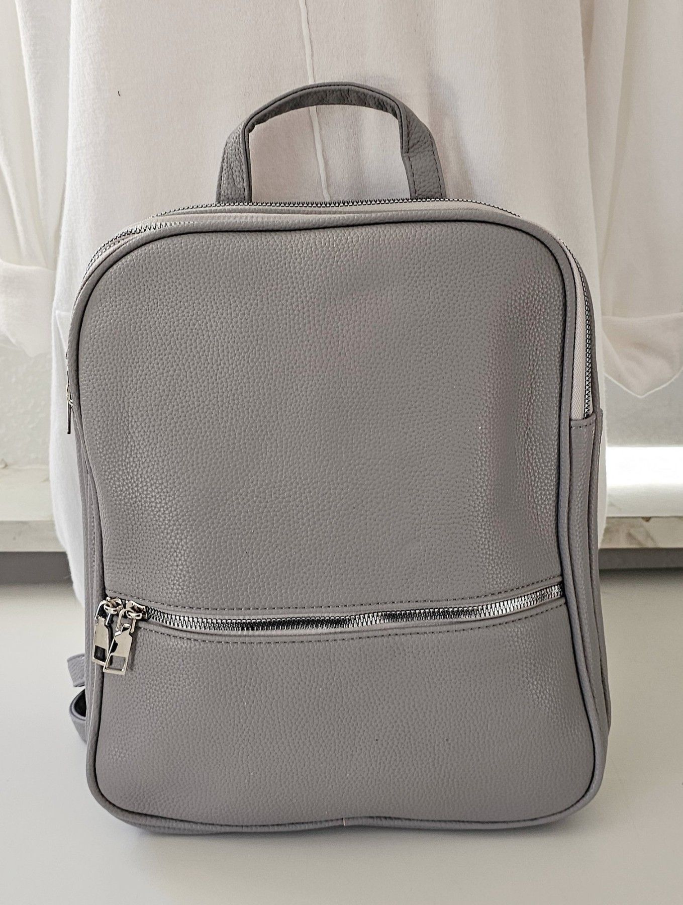 Unisex Rucksacktasche 3 Reißverschlussfächer Tasche Kunstleder Henkel in Grau